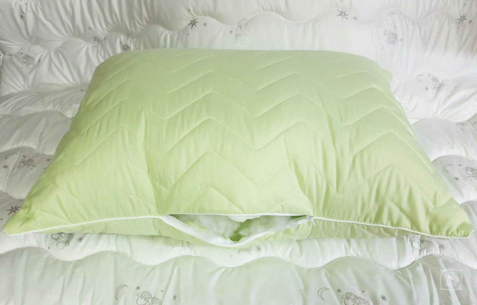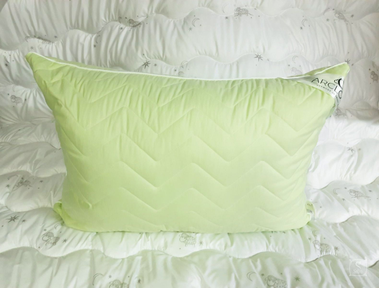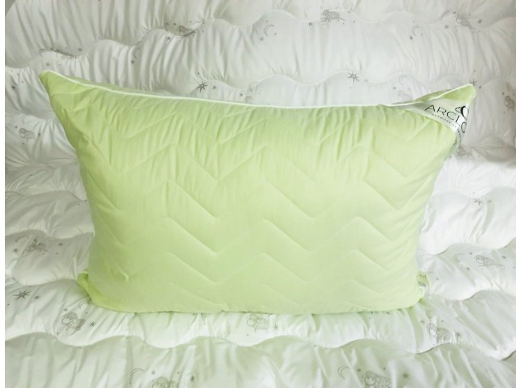 Гіпоалергенна стьобана подушка ArCloud Green Bamboo зеленого кольору . Без блискавки. Чохол: мікрофібра (поліестер 100%). Наповнювач: антиалергенне волокно. Підходить для людей, які страждають на алергію на натуральні наповнювачі. Пружна та одночасно м'яка подушка забезпечить максимальну зручність під час сну.
