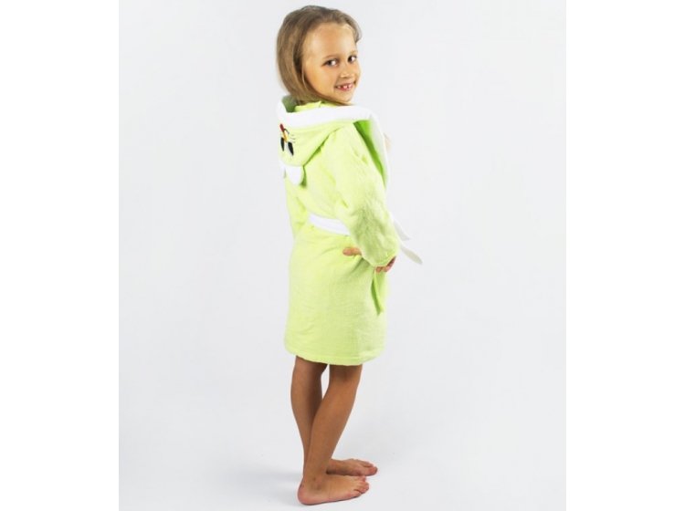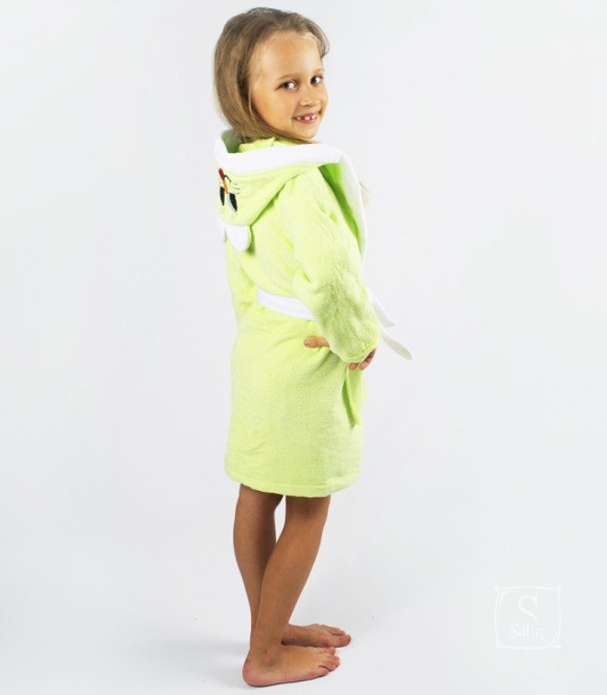 Халат дитячий махровий з капюшоном Lotus Зайчик салатового відмінно підходить для відвідування басейну або ванної як банний халат, так як виготовлений зі 100% бавовни (махра). Капюшон прикрашений вушками та вишивкою у вигляді зайчика.