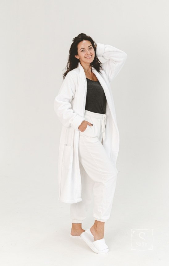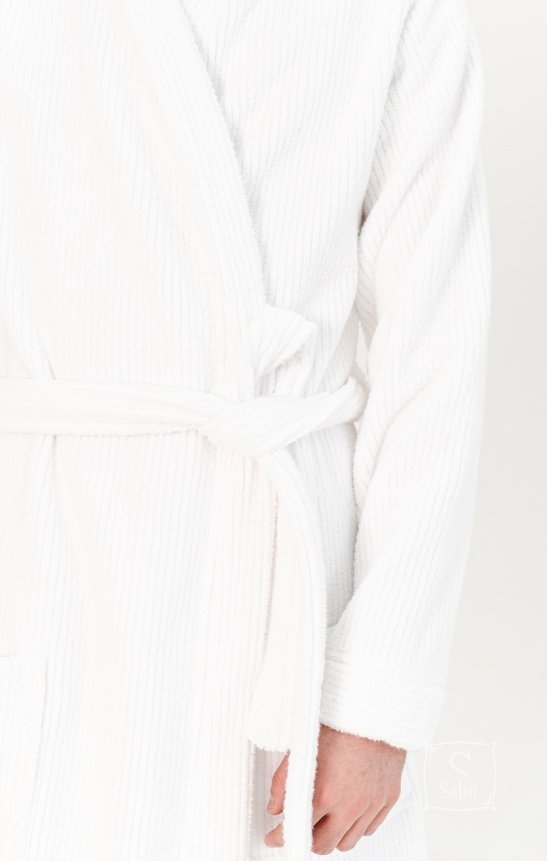 Махровий халат Lotus Bold white прямого крою з коміром-кімоно, кишенями, на запах під пояс, ідеально підходить для відвідування басейну, пляжу або для використання після лазневих процедур. Халат з бавовни відмінно вбирає вологу, залишається м'яким після прання. Щільність: 470 гр/м2. Виробник: ТМ Lotus (Туреччина).