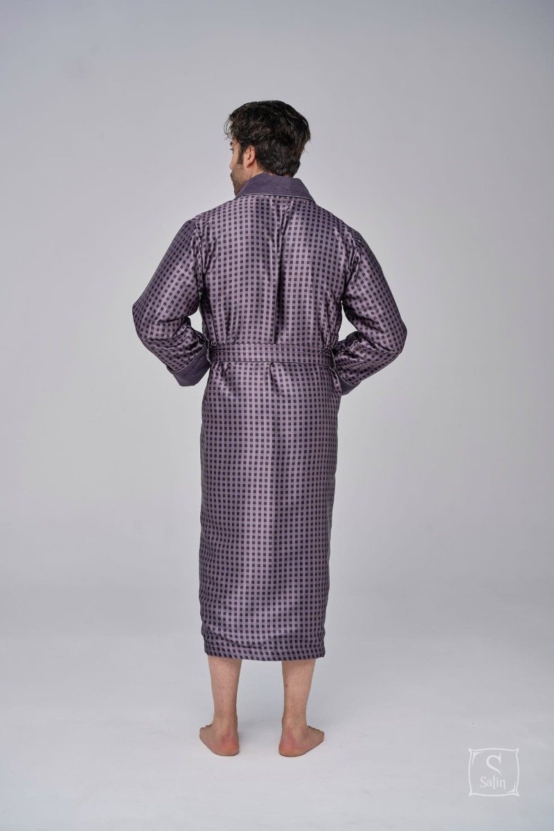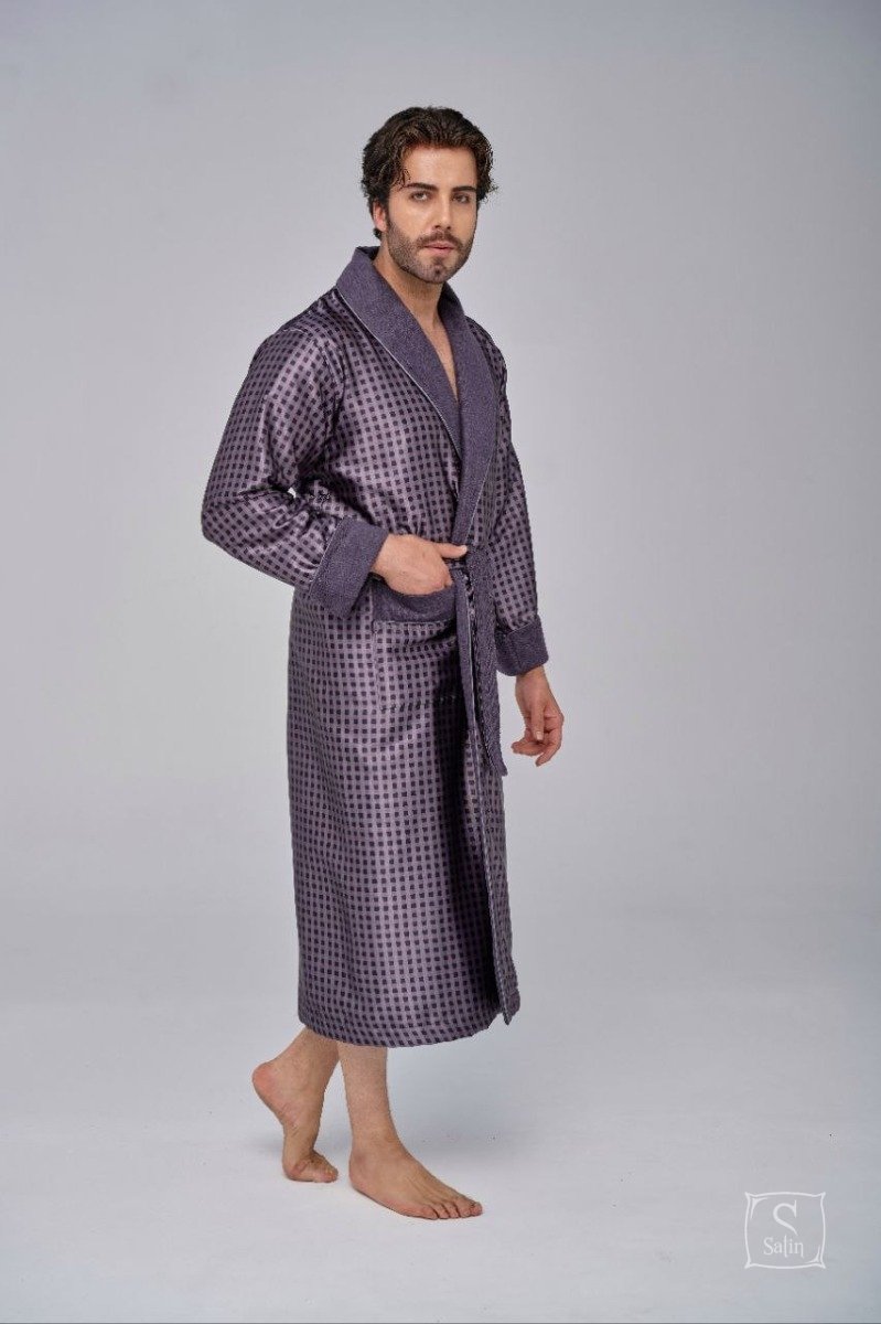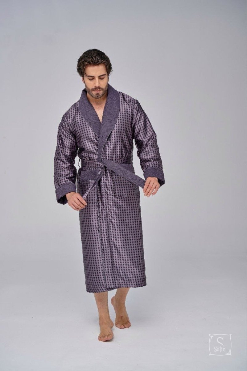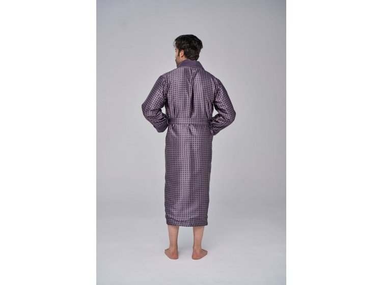 Довгий чоловічий халат "Nusa" ns 1515 сірого кольору із двома кишенями. Відкладний комір і кишені прикрашені кантом . Халат виконаний з тканини зовні: шовк, усередині: махра, підлоги халата утримуються зручним широким поясом. Прекрасний подарунок коханим людям до свят.