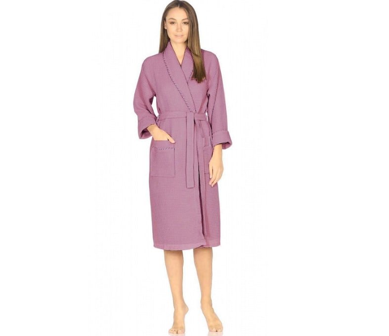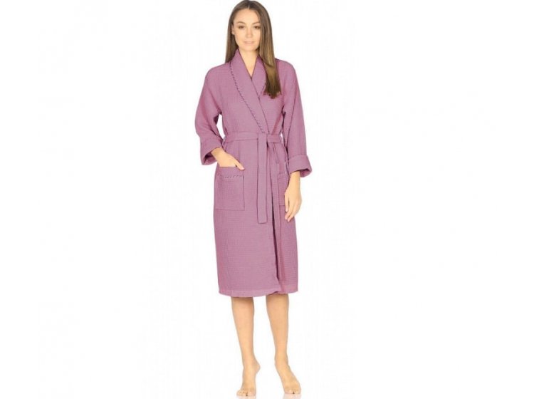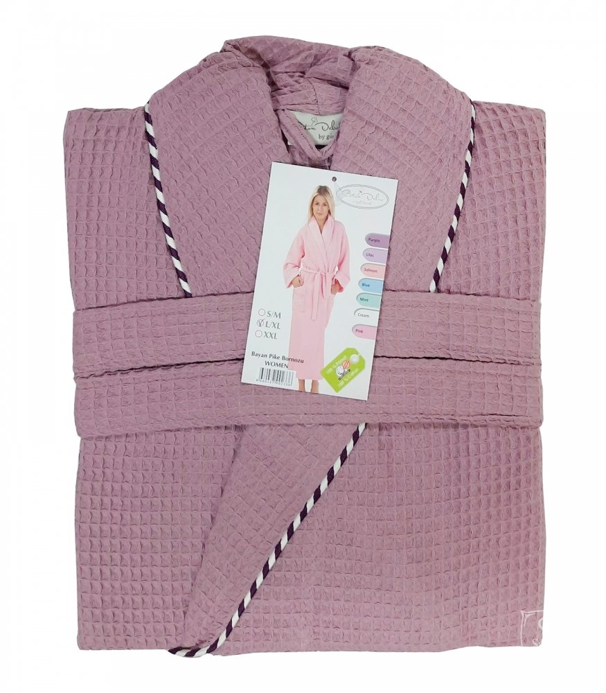 • Стильний жіночий вафельний халат Gursan Purple зі 100% бавовни для дому та відпочинку з коміром шаль, без капюшона.