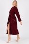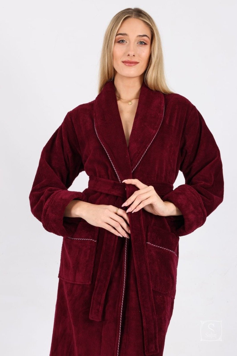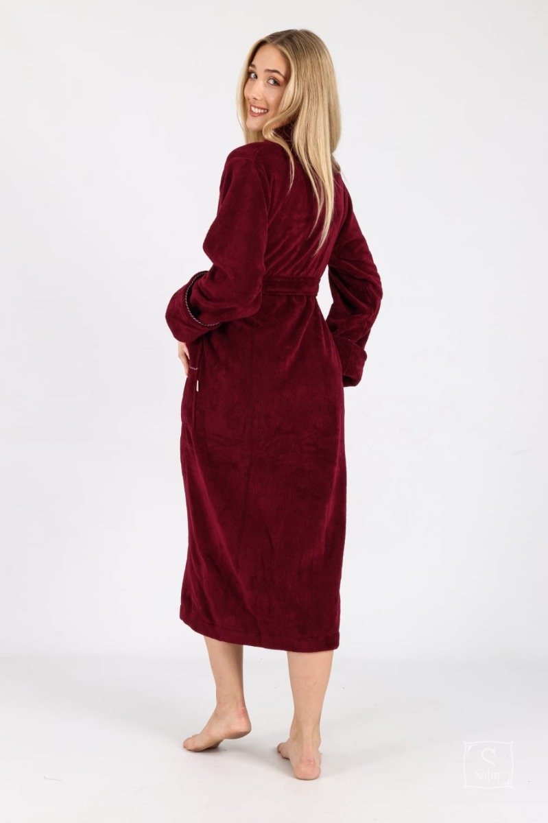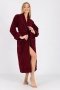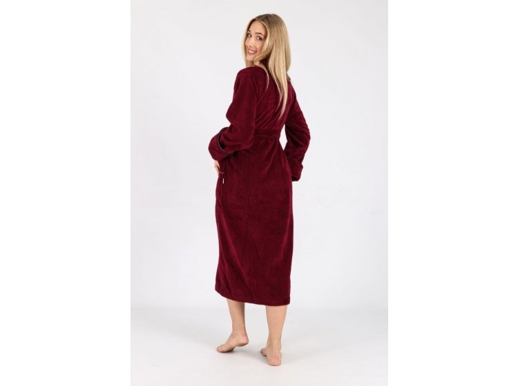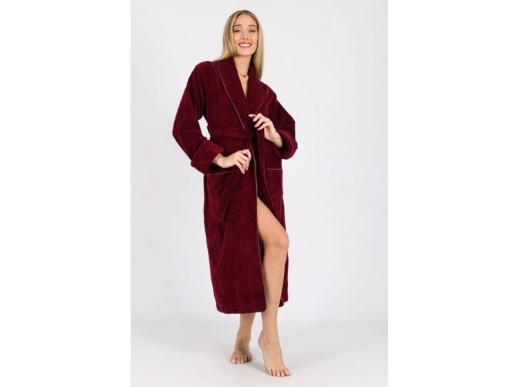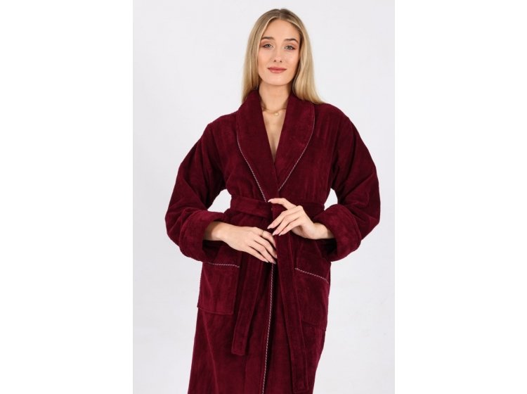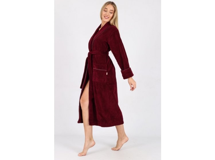 Довгий жіночий махровий бамбуковий халат з шалевим коміром Nusa 6895 бордового. кольори, кишені, на поясі. Підлоги та кишені прикрашені кантом.