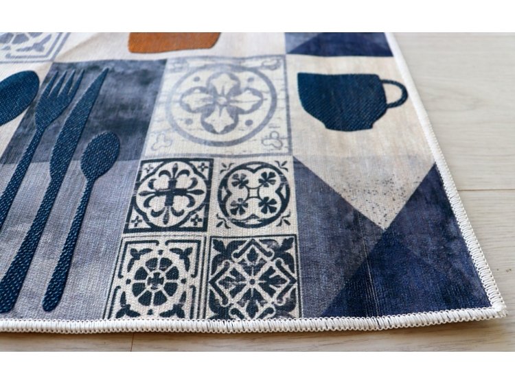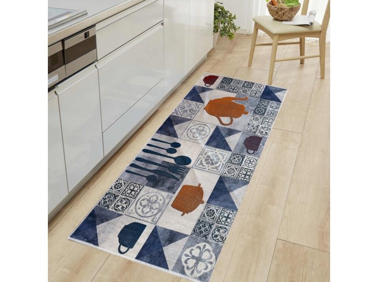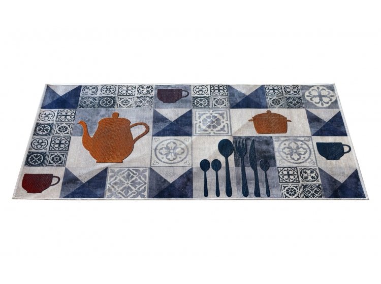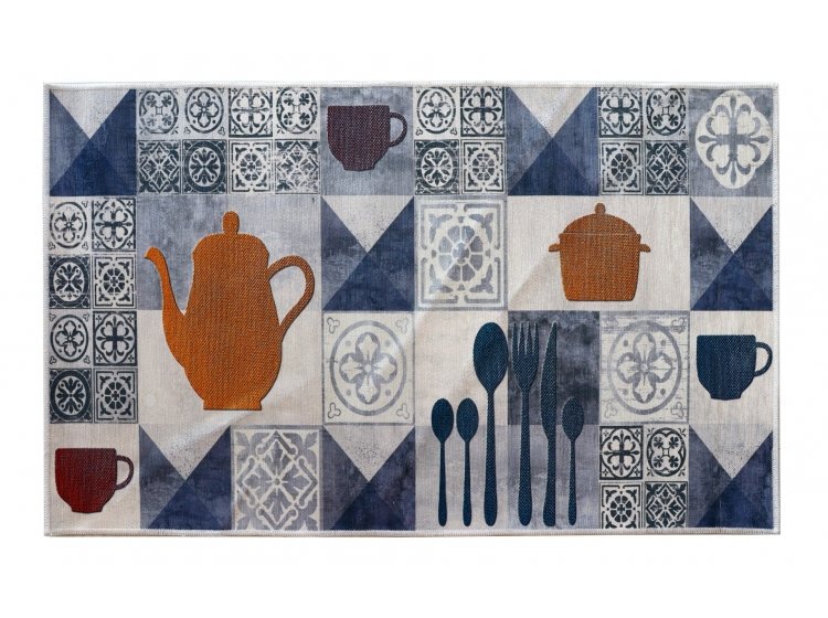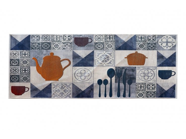 Стильний функціональний килимок для кухні IzziHome Schon 2830-01 у різнокольорових тонах, c до расивим малюнком кухонної тематики, чудово доповнить кухонний інтер'єр , подарує відчуття затишку.