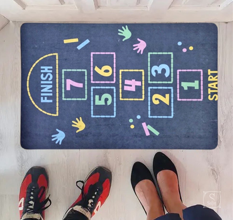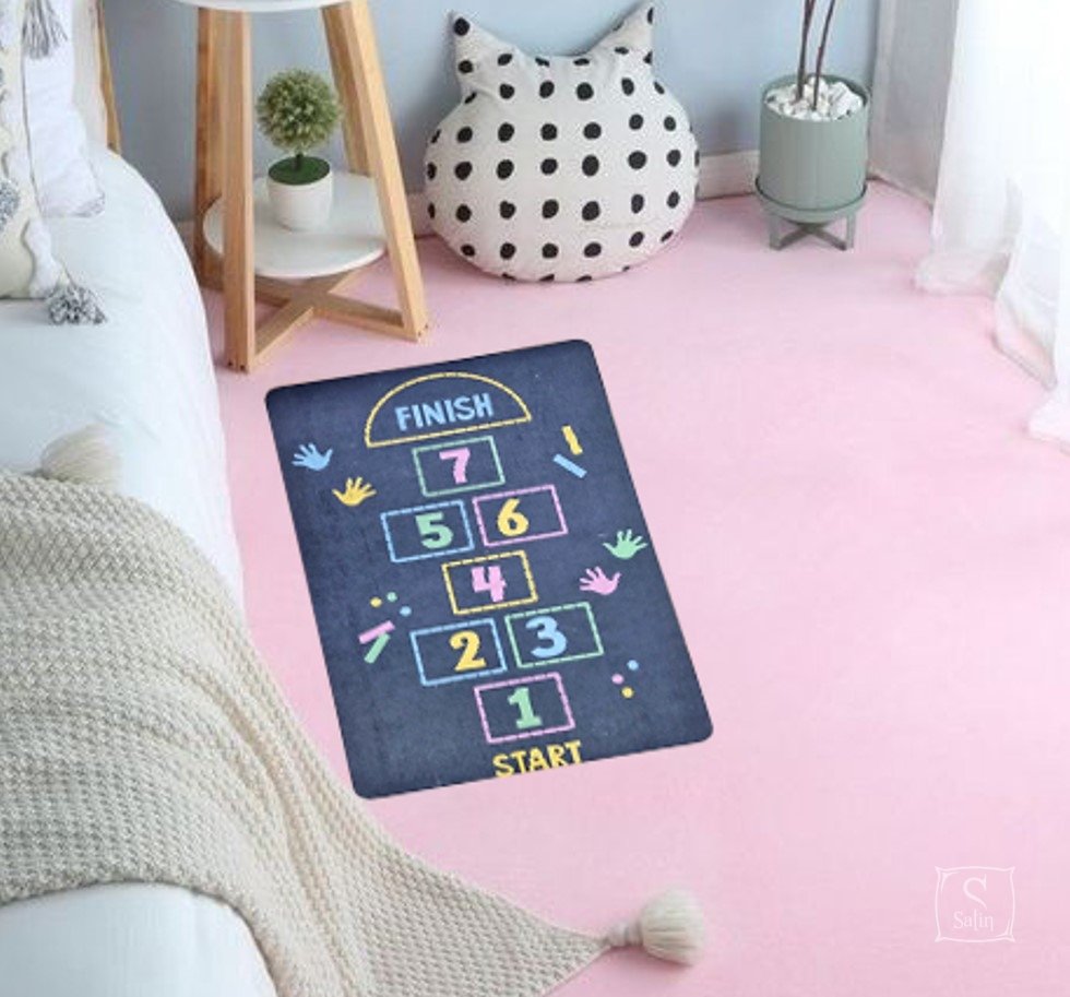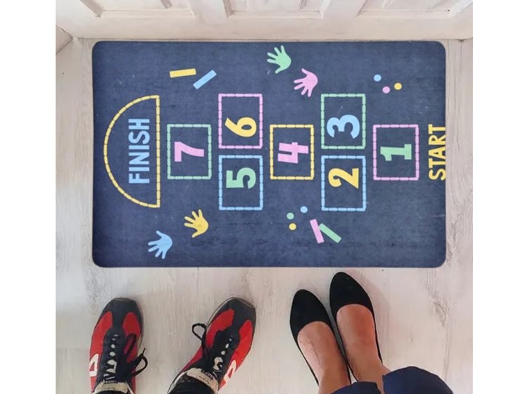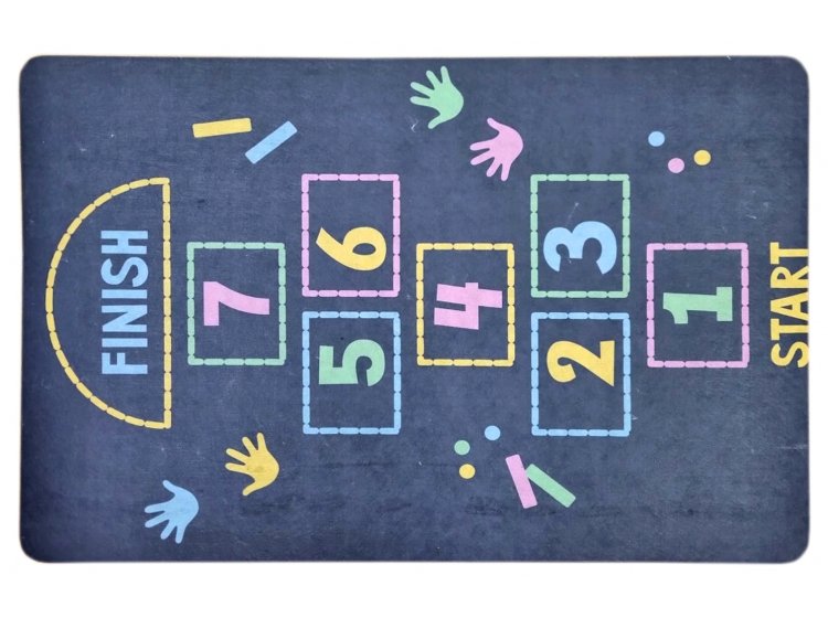 Стильний функціональний килимок для дитячої кімнати IzziHome Kids 2820-06 у синьо-різнокольорових тонах, з принтом гри "Класики", обов'язково сподобається дитині, чудово доповнить інтер'єр, подарує відчуття затишку.
