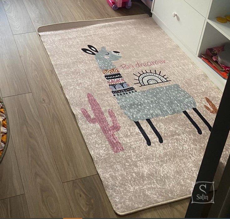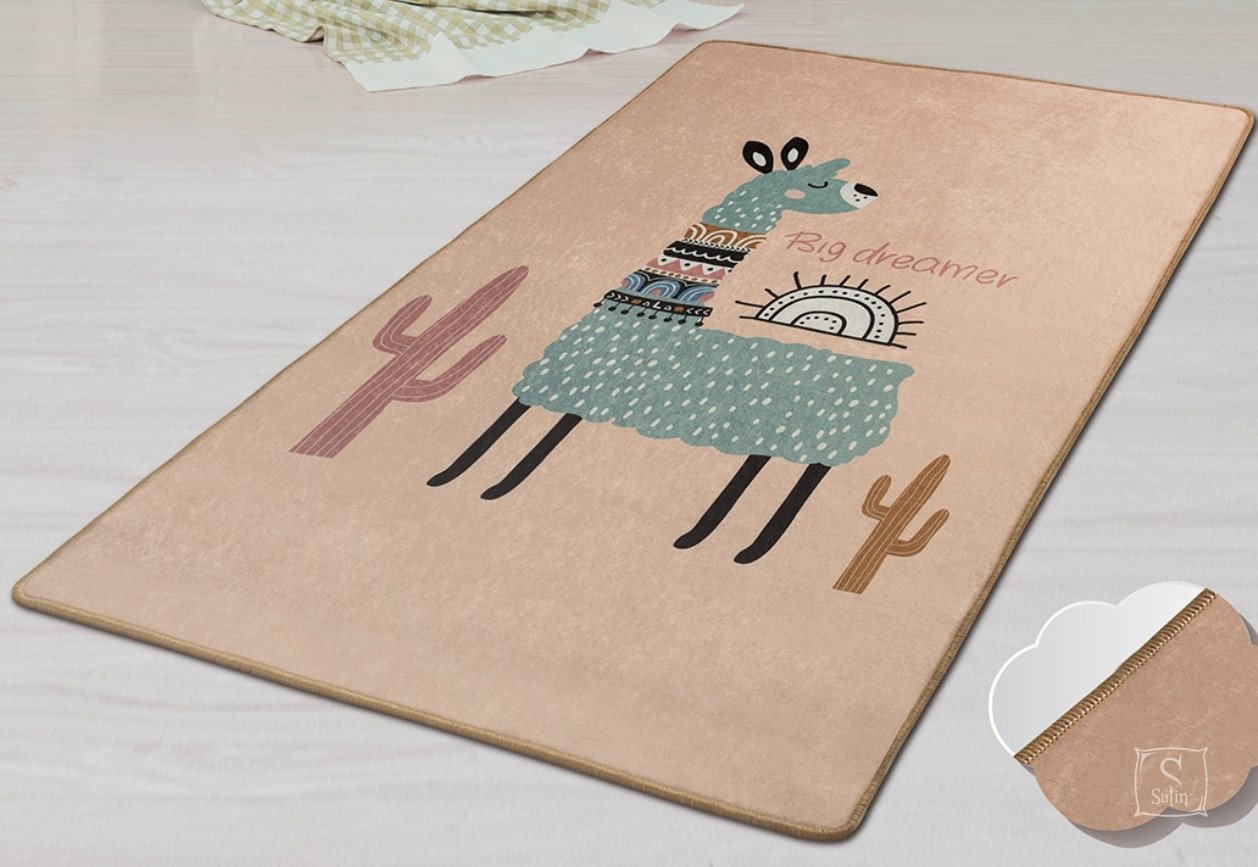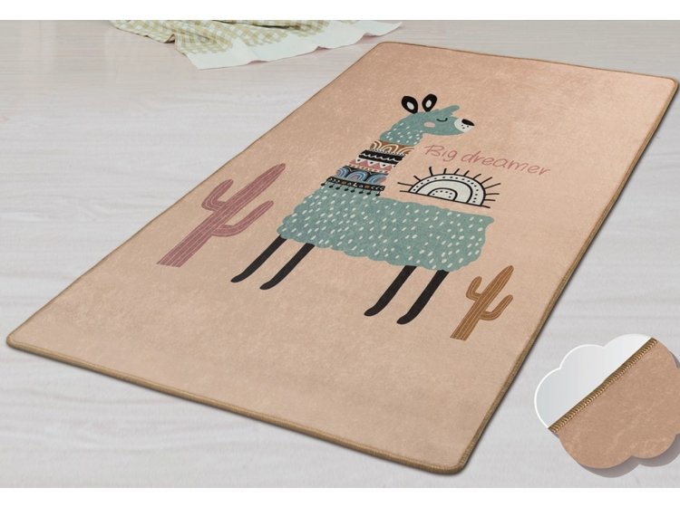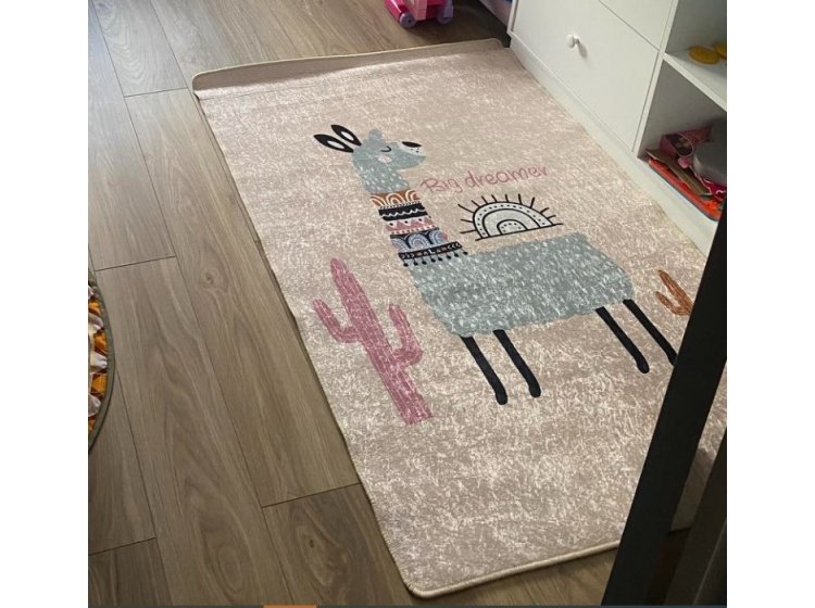 Килимок у дитячу кімнату Chilai Home Lama оформлений у різнокольорових тонах та прикрашений принтом лама. Килимок виконаний зі 100% поліестеру, без ворсу, з антиковзким покриттям, товщиною 0,5 см.