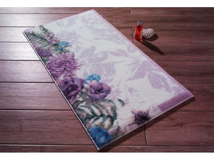 Створення домашнього затишку обов'язково має на увазі покупку красивих і м'яких килимків, які займуть місце у передпокої, спальні або у ванній кімнаті. Ми пропонуємо Вам чудові домашні килимки Confetti . Килимок для ванної Pick Flower Lila прямокутної форми в бузкових тонах з малюнком квіти , чудово виглядає, довговічний, відмінно стирається.