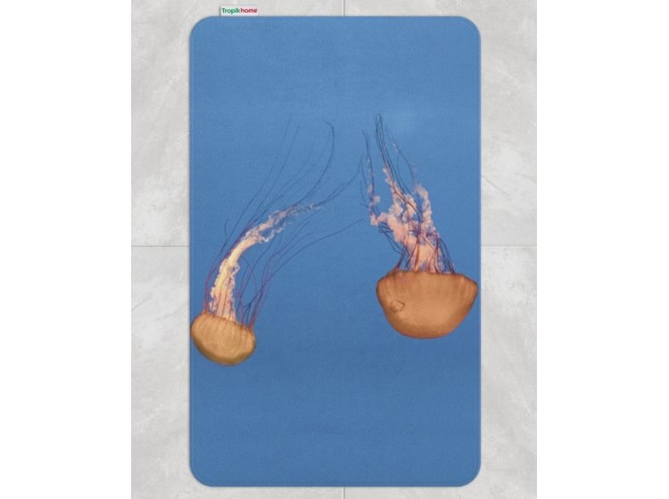 Створення домашнього затишку обов'язково має на увазі покупку красивих і м'яких килимків, які займуть місце у передпокої, спальні або у ванній кімнаті. Ми пропонуємо вам чудові домашні килимки Tabe . Килимок Jellyfish виконаний зі 100% поліестеру в синіх тонах з візерунком медузи, м'який, чудово виглядає, довговічний, відмінно стирається.