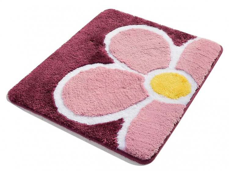 Килимок для ванної кімнати Chilai Home Flower mor фіолетового кольору з квітковим візерунком зі 100% акрилу з антиковзким покриттям товщиною 1 см.