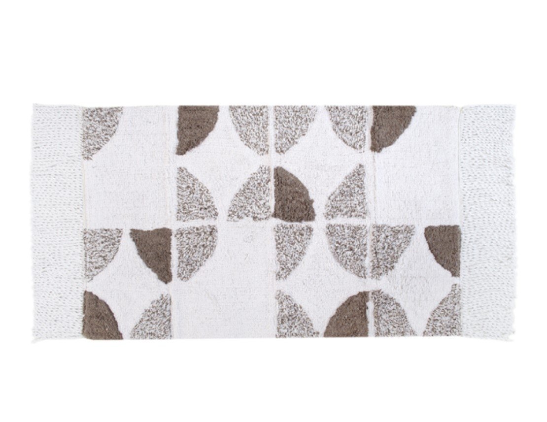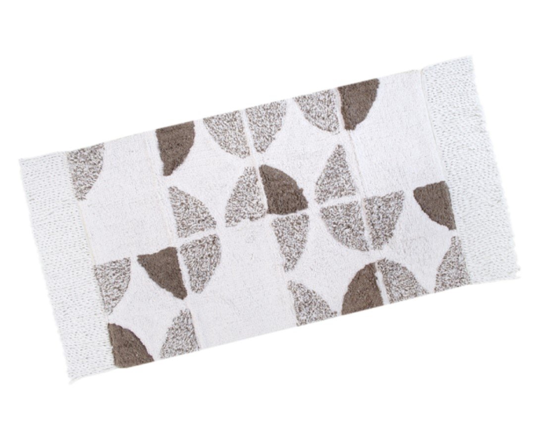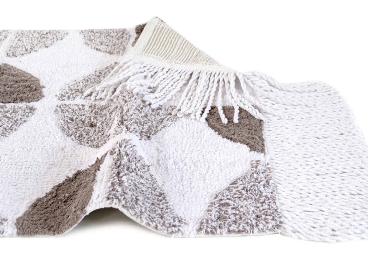 Килимок прямокутної форми Brook ekru виконаний зі 100% бавовни в молочно-бежевих тонах , прикрашений геометричним візерунком та бахромою . Створить у ванній або будь-якій іншій кімнаті Вашого житла привабливий акцент, забезпечить ніжкам тепло та безпеку. Такий килимок чудово виглядає, довговічний, відмінно стирається.