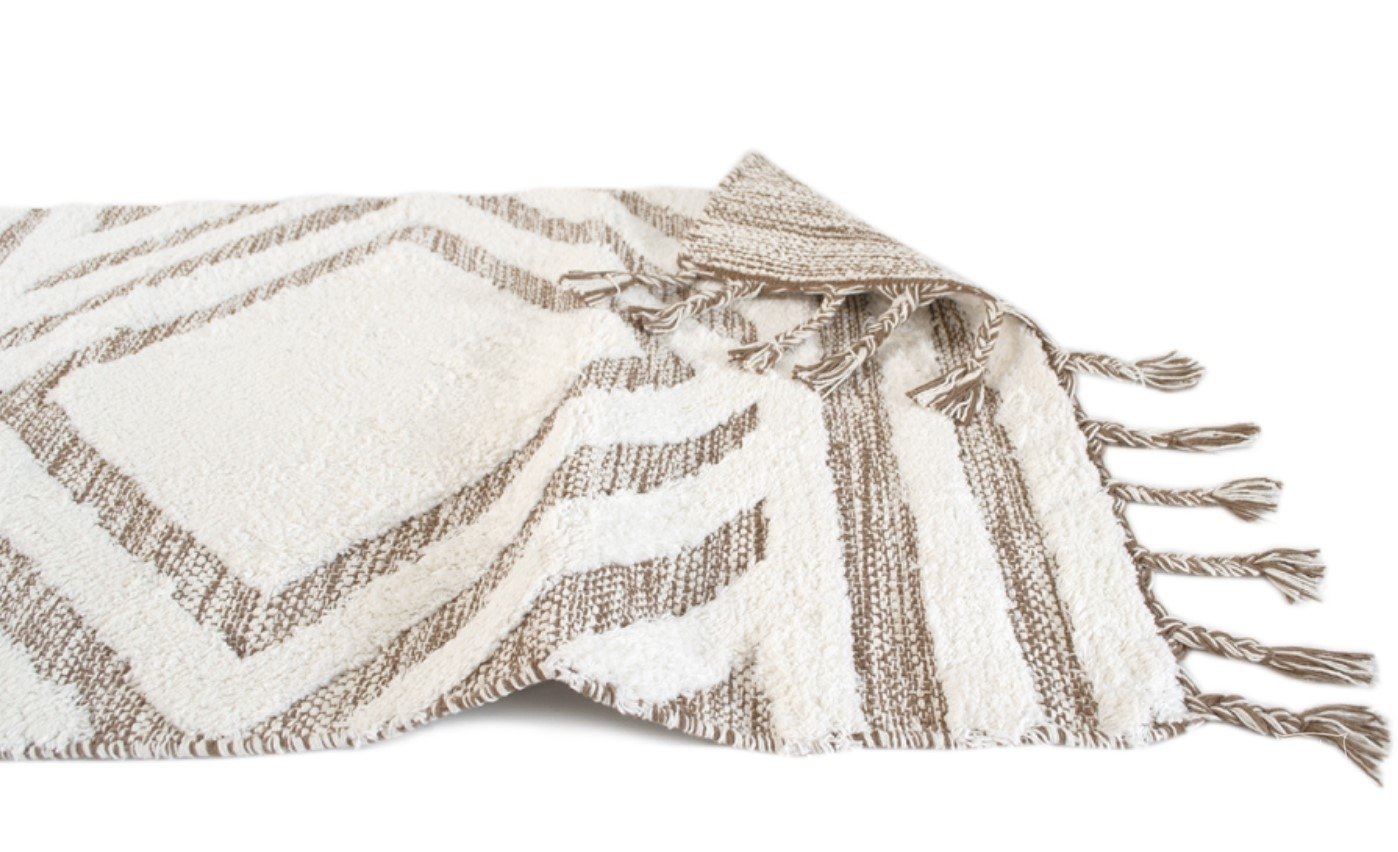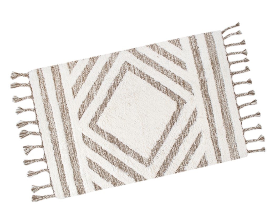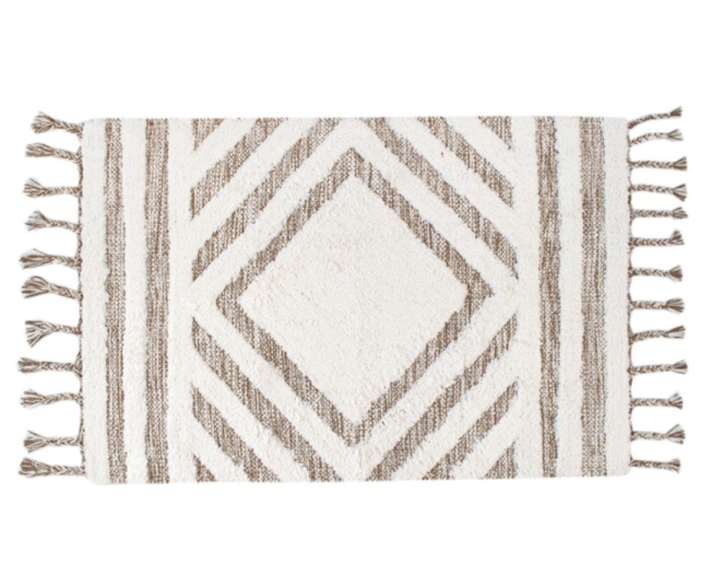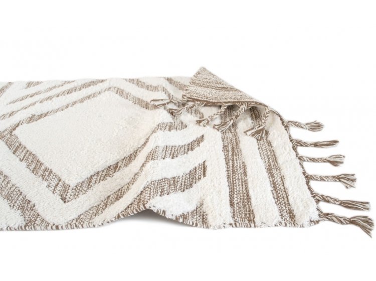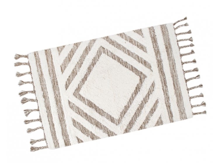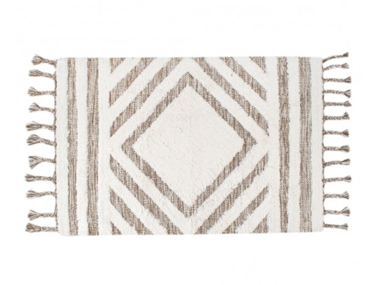 Килимок прямокутної форми Hoover kahverengi/ekru виконаний у кавово-молочних тонах, прикрашений геометричним візерунком та бахромою . Створить у ванній або будь-якій іншій кімнаті Вашого житла привабливий акцент, забезпечить ніжкам тепло та безпеку. Такий килимок чудово виглядає, довговічний, відмінно стирається.
