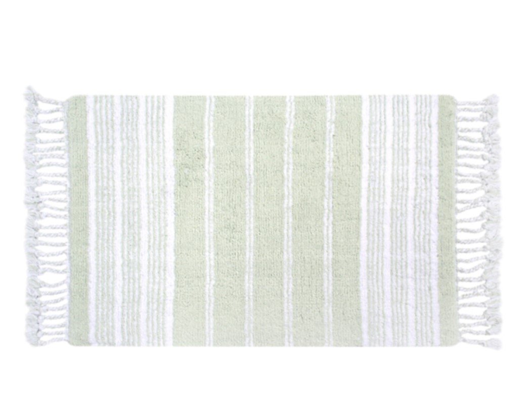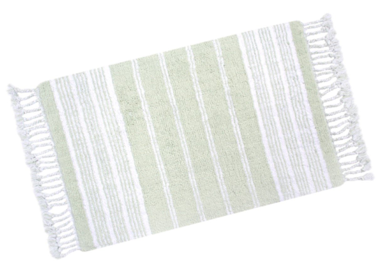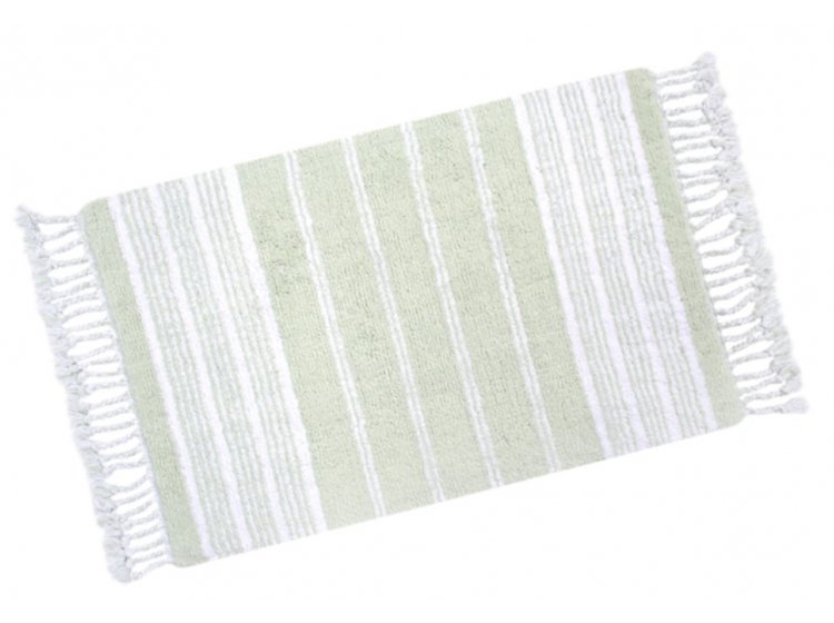 Килимок Martil yesil виконаний зі 100% бавовни у біло-зелених тонах у смужку, з натуральним щільним ворсом та бахромою. Створить у будь-якій кімнаті Вашого житла привабливий акцент, забезпечить ніжкам тепло та безпеку. Такий килимок чудово виглядає, довговічний, відмінно стирається.