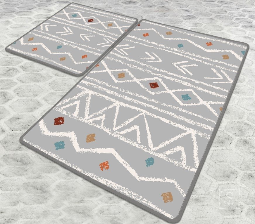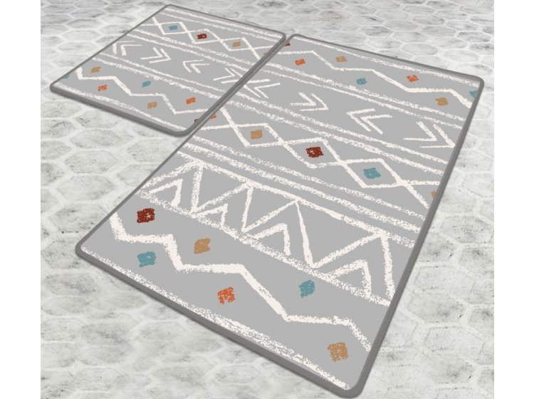 Набір килимків для ванної кімнати Chilai Home Ballocco banyo halisi djt включає два різнокольорові килимки. Килимки Chilai Home виконані без ворсу зі 100% поліестеру , з антиковзним покриттям, товщиною 0,5 см.