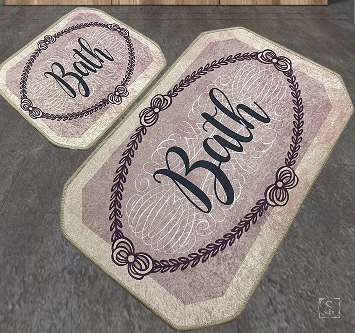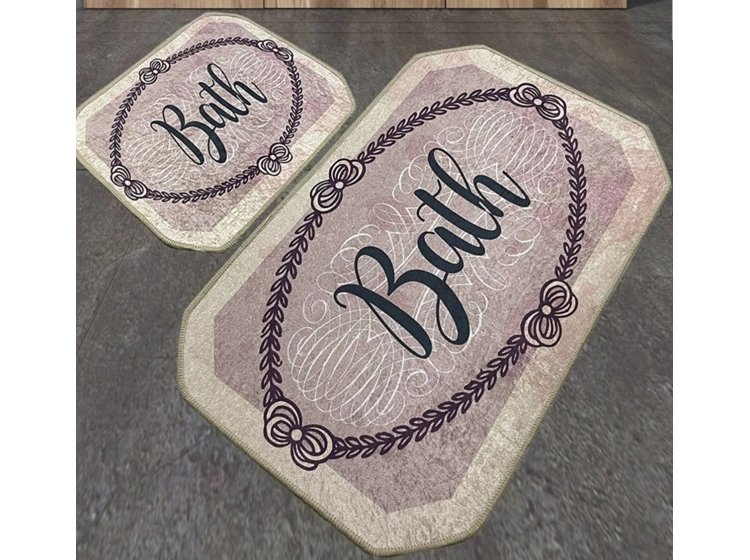 Набір килимків для ванної кімнати Chilai Home Voten включає два килимки виконані в бежевих тонах з візерунком напис. Килимки Chilai Home виконані без ворсу зі 100% поліестеру , з антиковзним покриттям, товщиною 0,5 см.