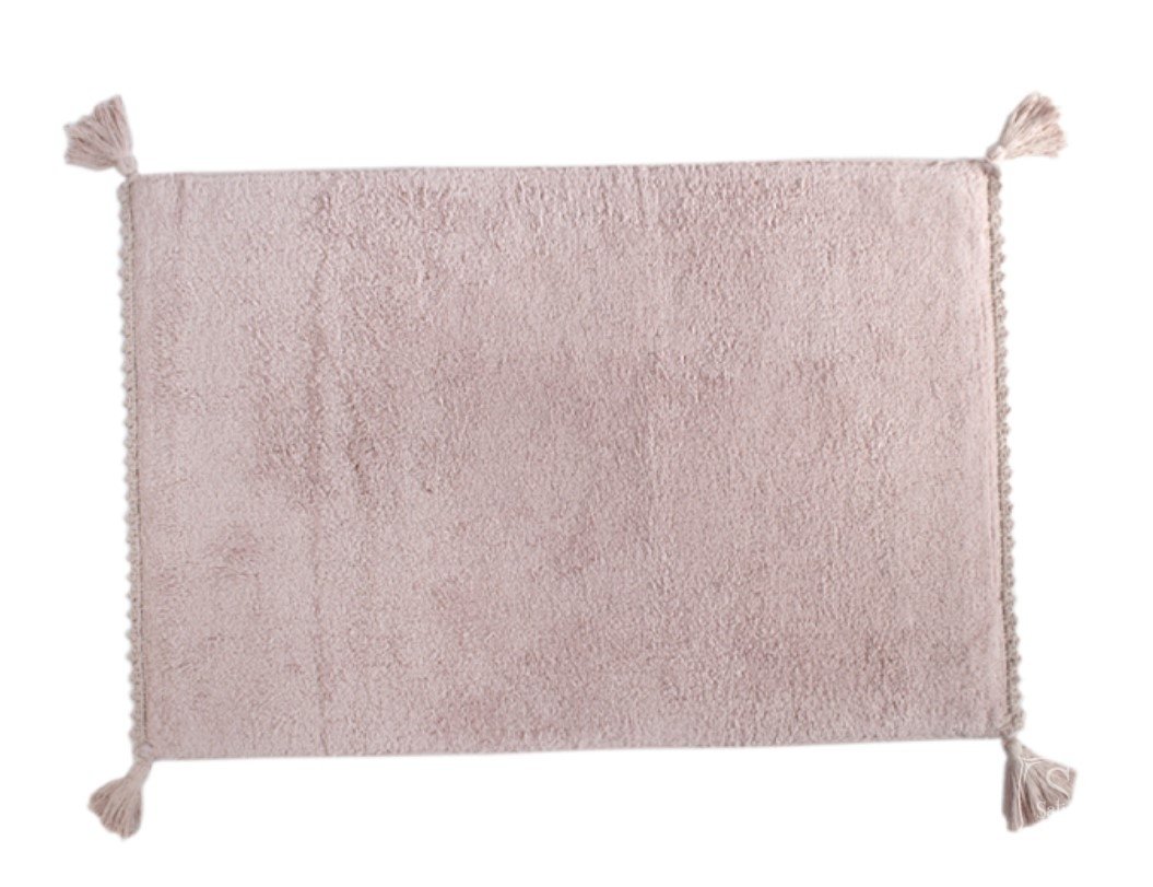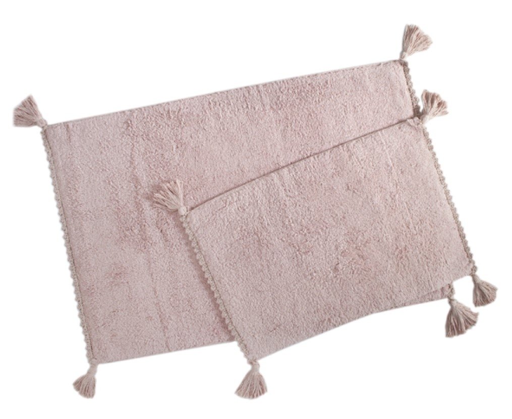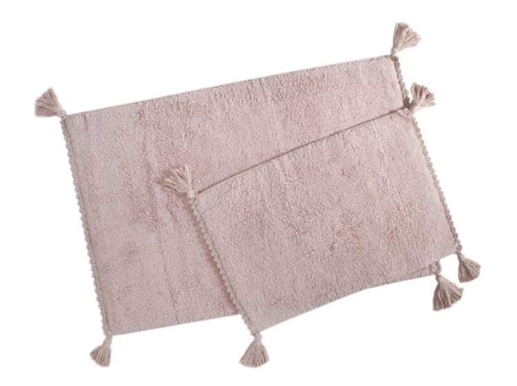 Набір килимків з бавовняною основою Benny gul kurusu виконаний зі 100% бавовни в рожевому кольорі, прикрашений плетеним мереживом та пензликами . Такі килимки чудово виглядають, довговічні, добре стираються, стануть окрасою інтер'єру, зроблять кімнату більш комфортною і унікальною. Щільність: 140 0 г/м2.