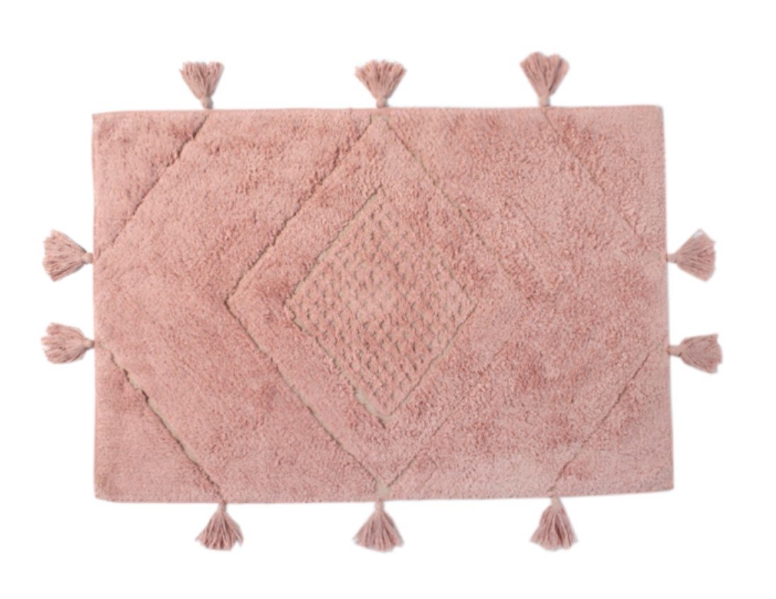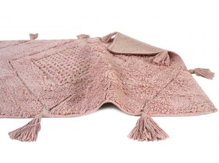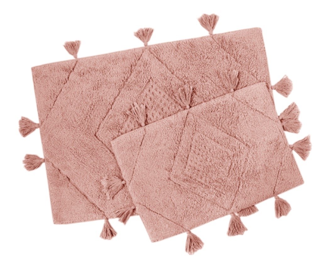 Набір килимків з бавовняною основою Esty gul kurusu виконаний зі 100% бавовни в рожевому кольорі, прикрашений рельєфним геометричним та пензликами . М'який натуральний ворс подарує відчуття комфорту, захистить ноги від холодної статі. Такі килимки чудово виглядають, довговічні, добре стираються, стануть окрасою інтер'єру, зроблять кімнату більш комфортною і унікальною. Щільність: 1000 г/м².