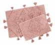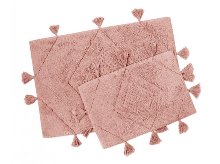 Набір килимків Fern pembe виконаний зі 100% бавовни в рожевому кольорі, прикрашений мереживним оздобленням по краю . Такі килимки чудово виглядають, довговічні, добре стираються, стануть окрасою інтер'єру, зроблять кімнату більш комфортною і унікальною. Щільність: 1170 г/м2.