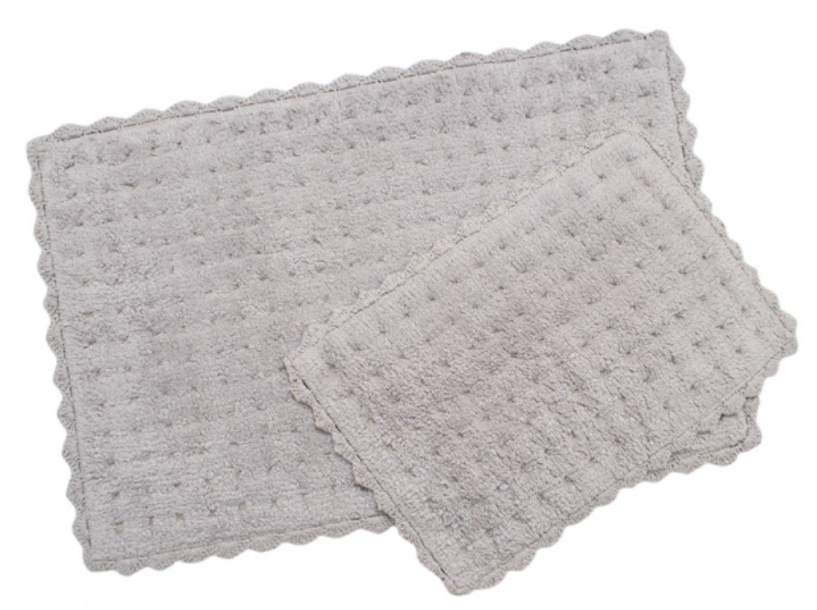 Набір з двох прямокутних килимків Garnet gri виконаний зі 100% бавовни у сірому кольорі, з вафельним візерунком на ворсі та мереживною обв'язкою по краю . Такі килимки чудово виглядають, довговічні, добре стираються, стануть окрасою інтер'єру, зроблять кімнату більш комфортною і унікальною. Щільність: 1730 г/м2.