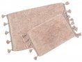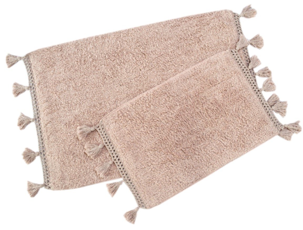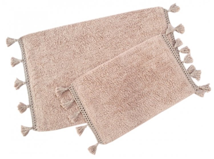 Набір килимків Janel pembe виконаний зі 100% бавовни в рожевому кольорі, прикрашений милими пензликами . Такі килимки чудово виглядають, довговічні, добре стираються, стануть окрасою інтер'єру, зроблять кімнату більш комфортною і унікальною. Щільність: 830 г/м2.