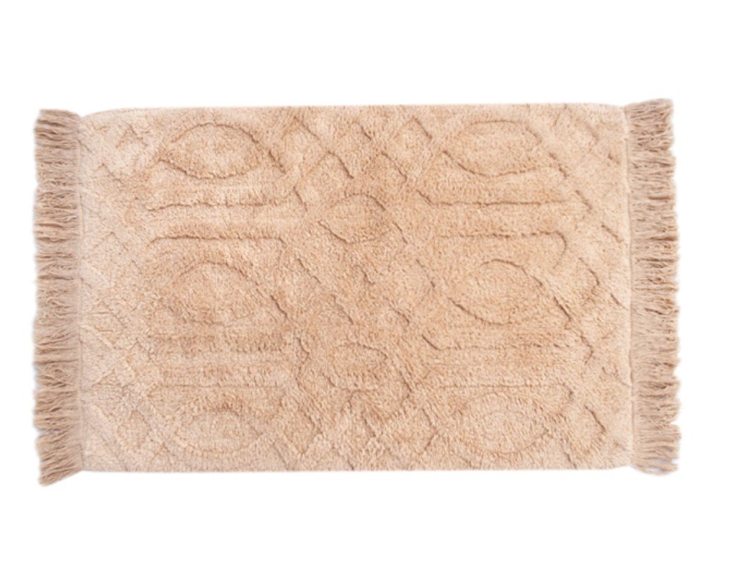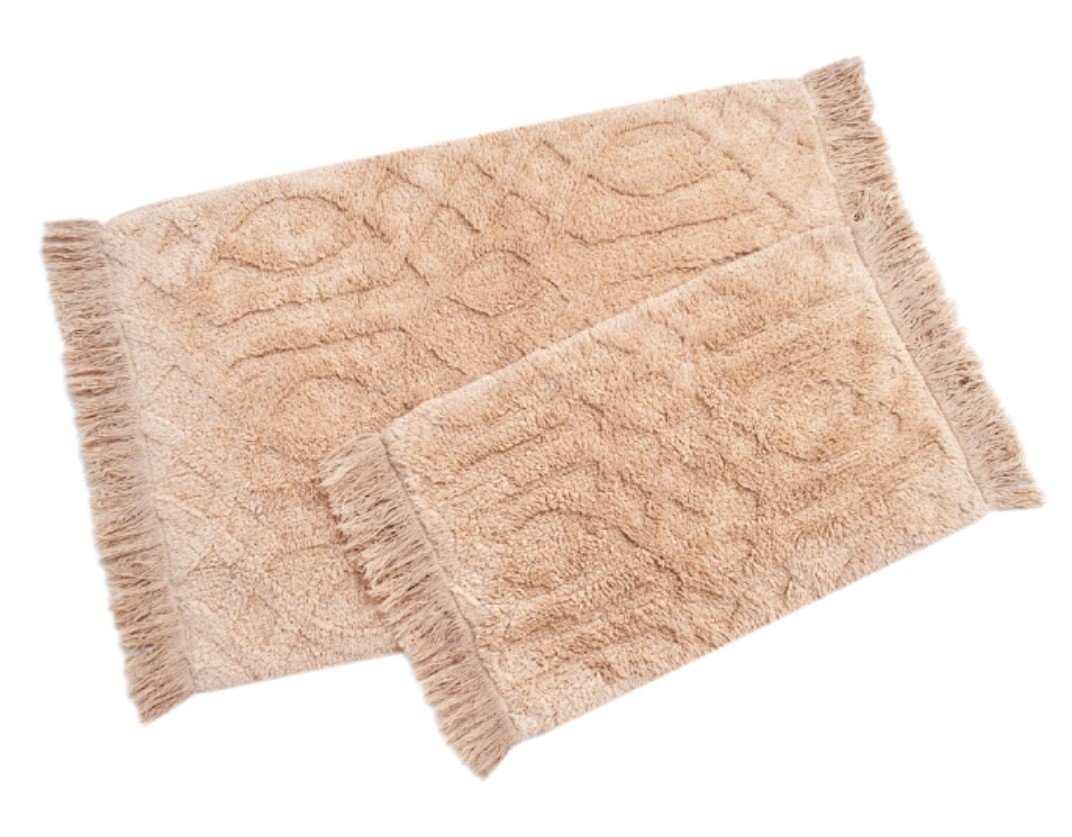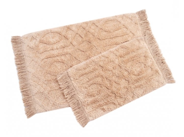 Створення домашнього затишку обов'язково має на увазі покупку красивих і м'яких килимків, які займуть місце у передпокої, спальні або у ванній кімнаті. Ми пропонуємо вам чудові домашні килимки Irya . Набір килимків Jebel somon виконаний зі 100% бавовни в лососевому (персиковому) кольорі, прикрашений геометричним візерунком та бахромою . Такі килимки чудово виглядають, довговічні, добре стираються, стануть окрасою інтер'єру, зроблять кімнату більш комфортною і унікальною. Щільність: 1700 г/м2.