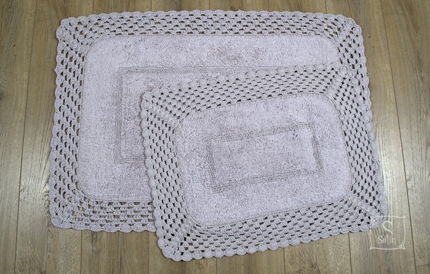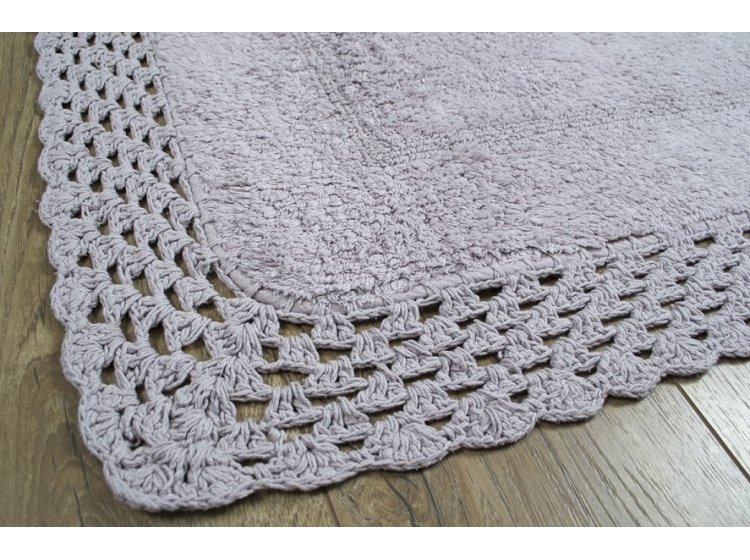 Створення домашнього затишку обов'язково має на увазі покупку красивих і м'яких килимків, які займуть місце у передпокої, спальні або у ванній кімнаті. Ми пропонуємо вам чудові домашні килимки Irya . Набір килимків Lizz lila виконаний зі 100% бавовни в фіолетовому кольорі, прикрашений плетеним мереживом по периметру і смугою на тон темніший за колір виробу, чудово виглядає, довговічні, добре стираються. Щільність: 1480 г/м2