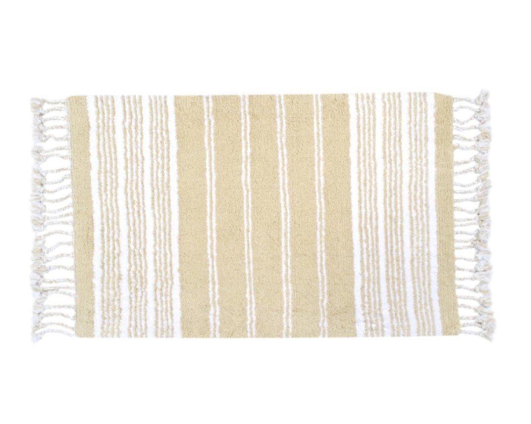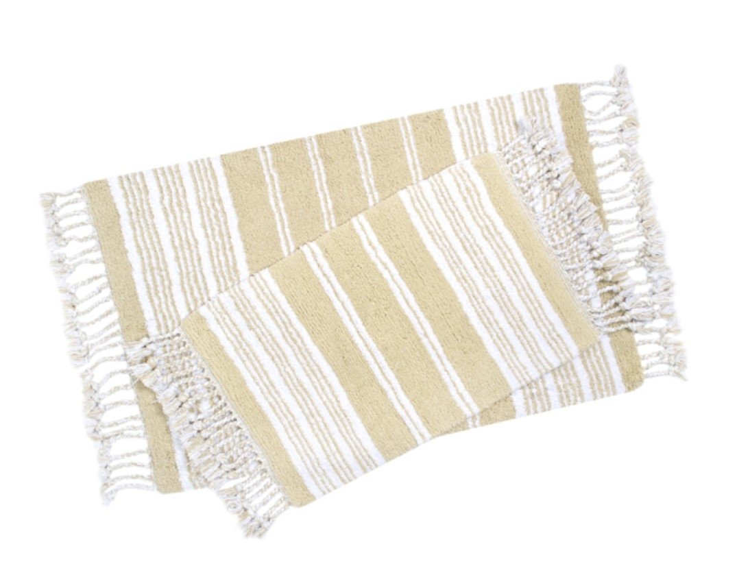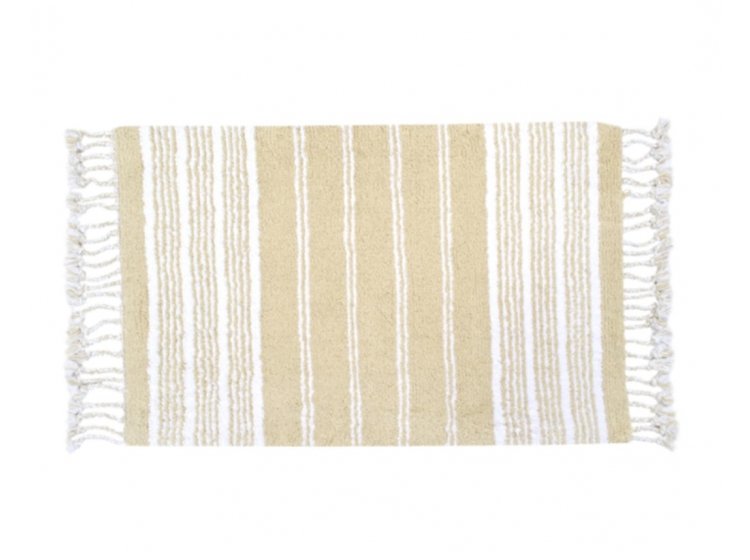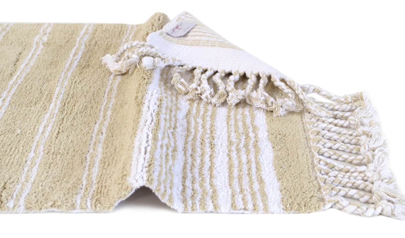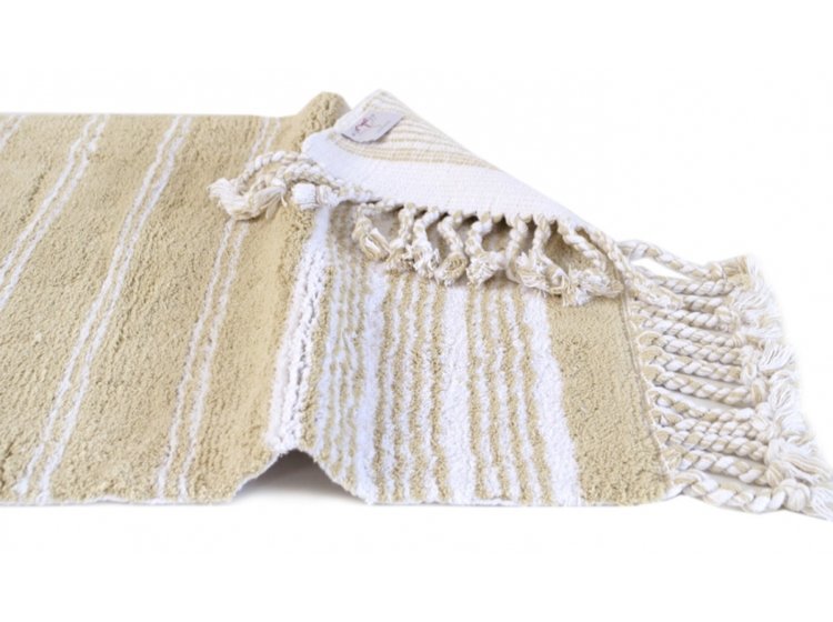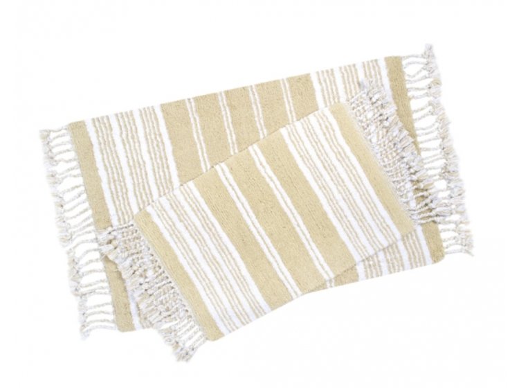 Створення домашнього затишку обов'язково має на увазі покупку красивих і м'яких килимків, які займуть місце у передпокої, спальні або у ванній кімнаті. Ми пропонуємо вам чудові домашні килимки Irya . Набір килимків Martil bej виконаний зі 100% бавовни у бежевих тонах з натуральним щільним ворсом та бахромою . Такі килимки чудово виглядають, довговічні, добре стираються, стануть окрасою інтер'єру, зроблять кімнату більш комфортною і унікальною. Щільність: 2026 г/м2.