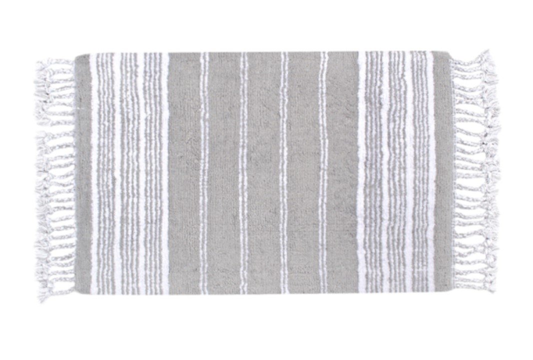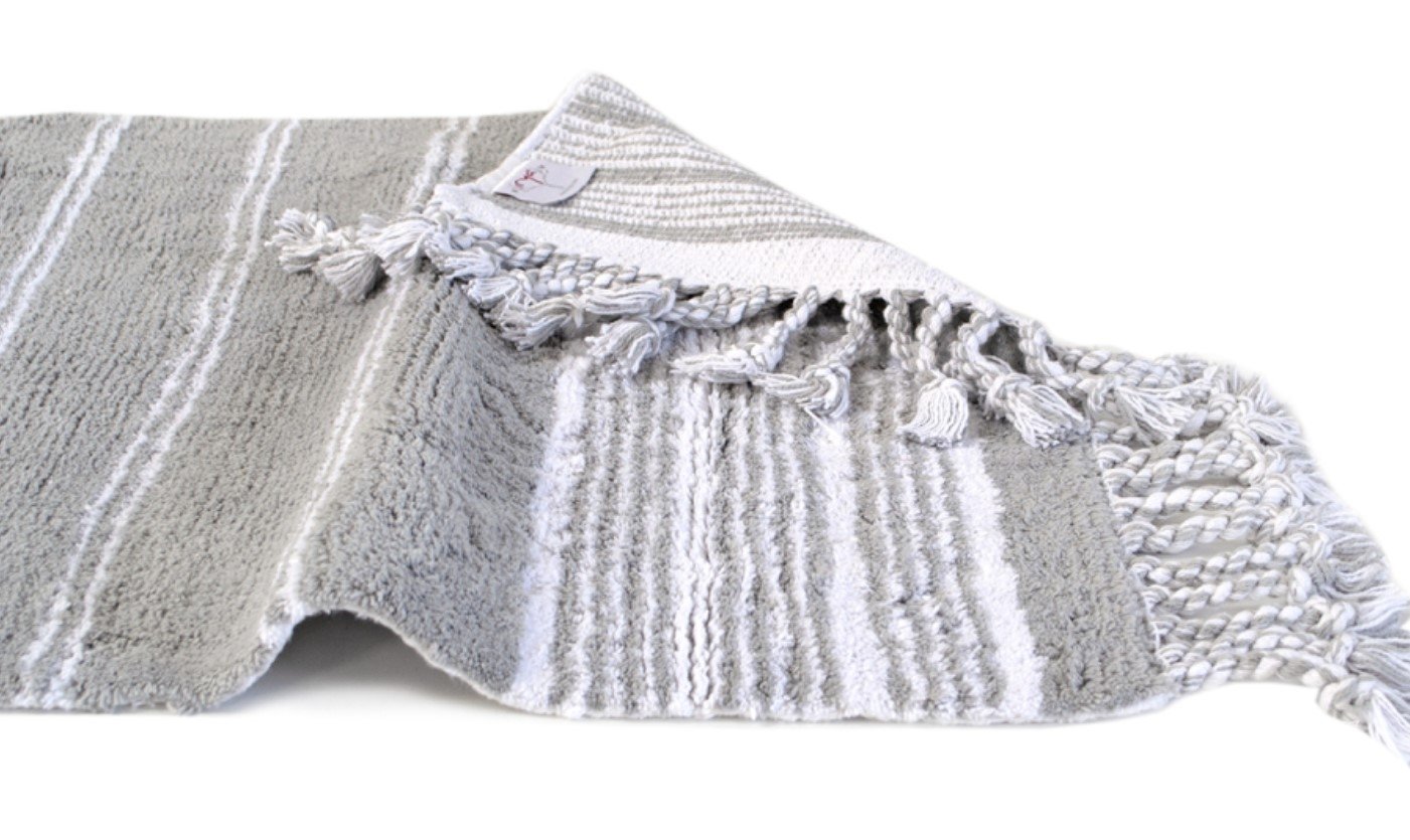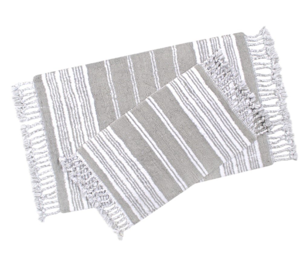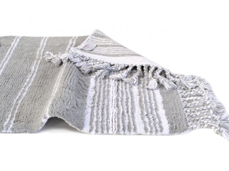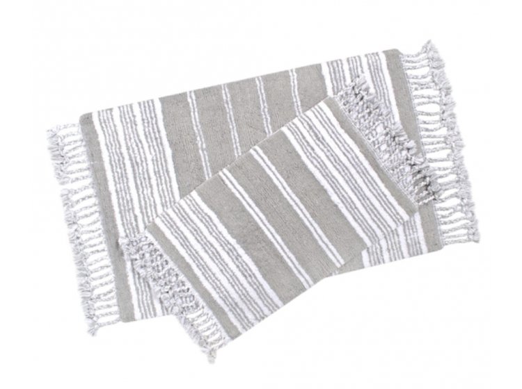 Створення домашнього затишку обов'язково має на увазі покупку красивих і м'яких килимків, які займуть місце у передпокої, спальні або у ванній кімнаті. Ми пропонуємо вам чудові домашні килимки Irya . Набір килимків Martil gri виконаний зі 100% бавовни в сірих тонах у смужку, з натуральним щільним ворсом та бахромою . Такі килимки чудово виглядають, довговічні, добре стираються, стануть окрасою інтер'єру, зроблять кімнату більш комфортною і унікальною. Щільність: 2026 г/м2.