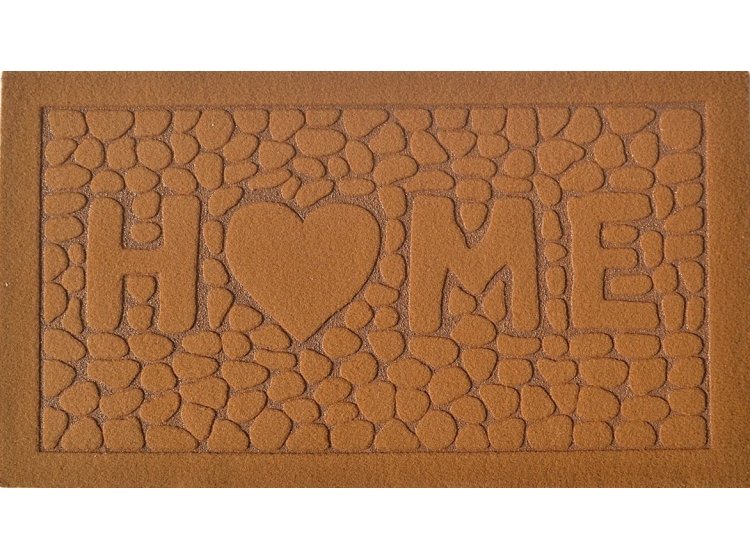 Прямокутний придверний килимок IzziHome PARGA KAHVE TAŞ HOME виконаний у коричневому кольорі з написом. Підходить для використання на вулиці. На килимок нанесено лазерний друк 3D. Склад: ПВХ (PVC), неслизька основа. Вироблено: у Єгипті для ТМ IzziHome.