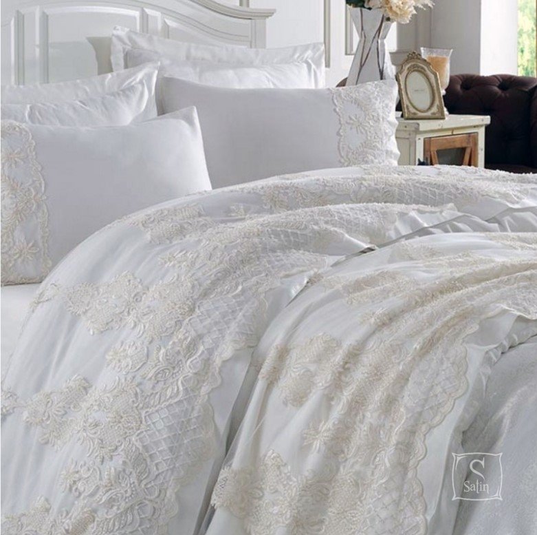 Євро : Підковдра: 200х220 см – 1 шт., простирадло: 240х260 см – 1 шт., наволочка: 50х70 см - 2 шт., наволочка: 50х70+5 см - 2 шт., покривало піку: 240х260 см - 10
