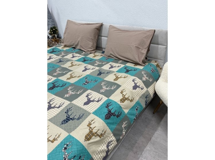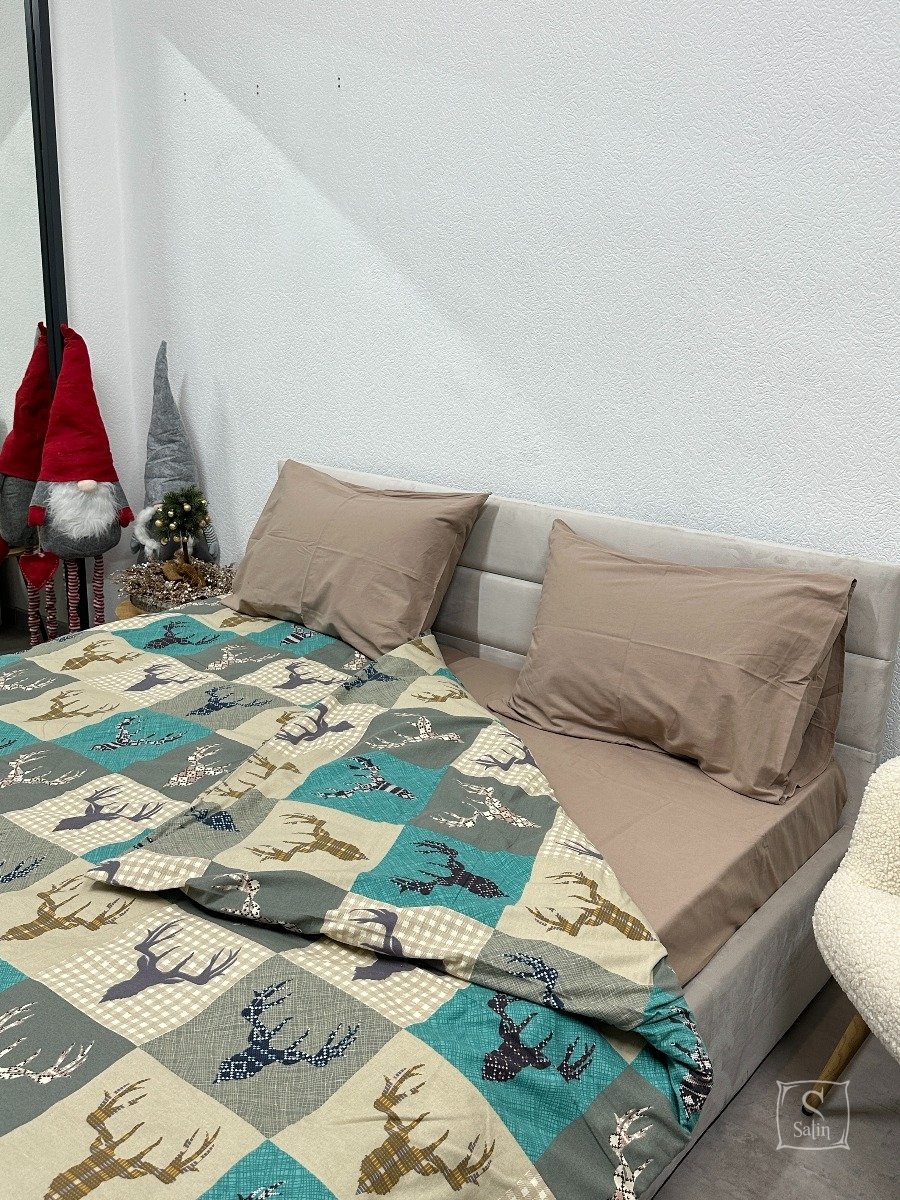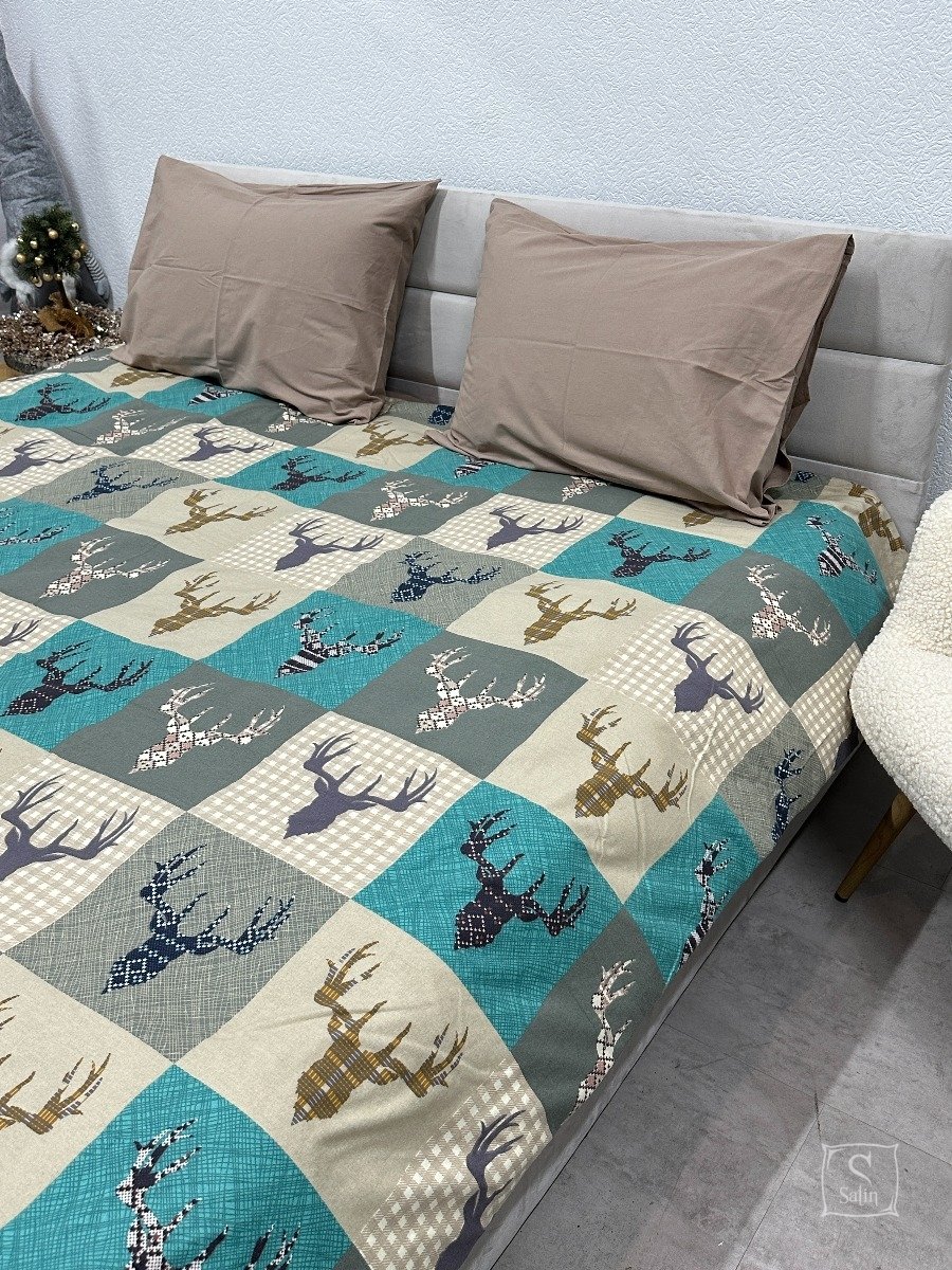 Новорічна постільна білизна Novita. Фланель 29345/3 Олені на зеленому