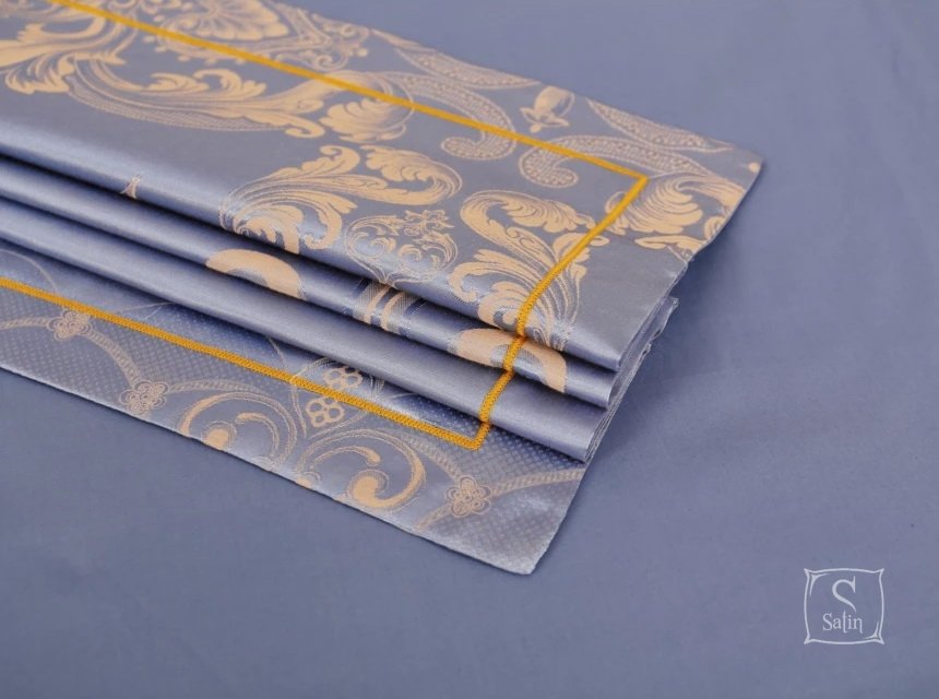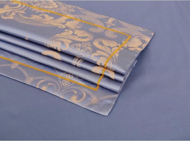 • Жаккард - тканий, що регулярно повторюється малюнок. Має цікаву фактуру з рельєфним тканим малюнком. Таке полотно не має чітко позначеного виворітного боку - опуклий малюнок з одного боку буде втиснутим з іншого. Візерунок один, а «змінюються місцями» кольору малюнка і фону, власне тканина двостороння.
