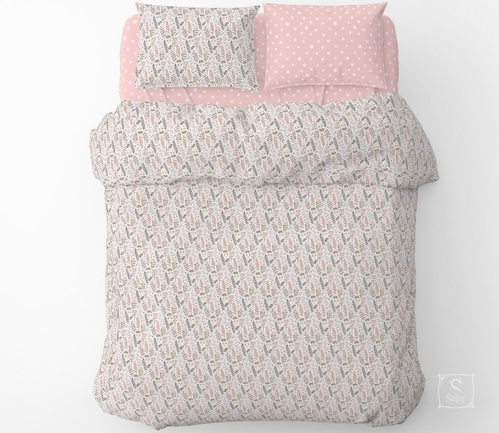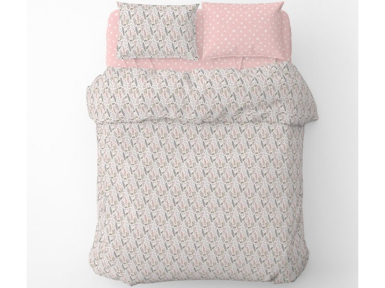 Комплект постільної білизни Home Line із бязі Цвітіння трав/Горох розовий прикрашений візерунком квіти та горох.