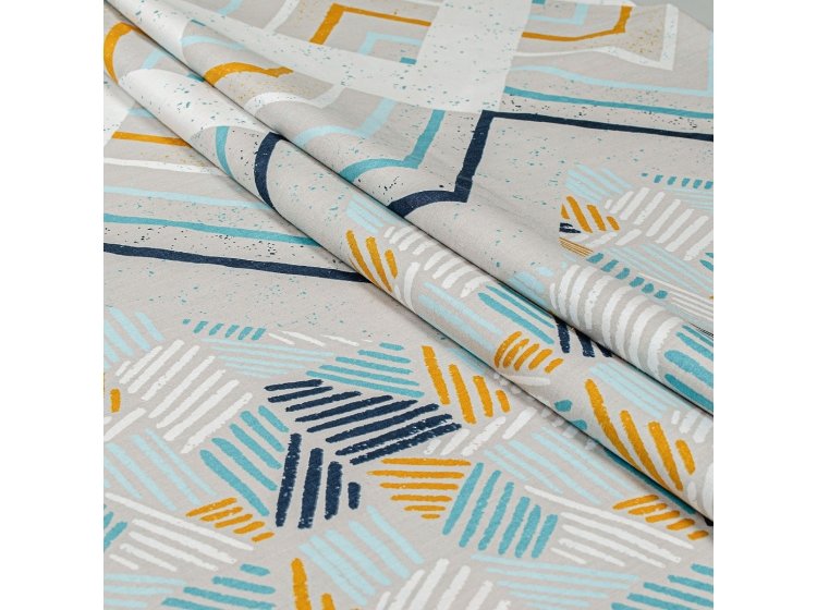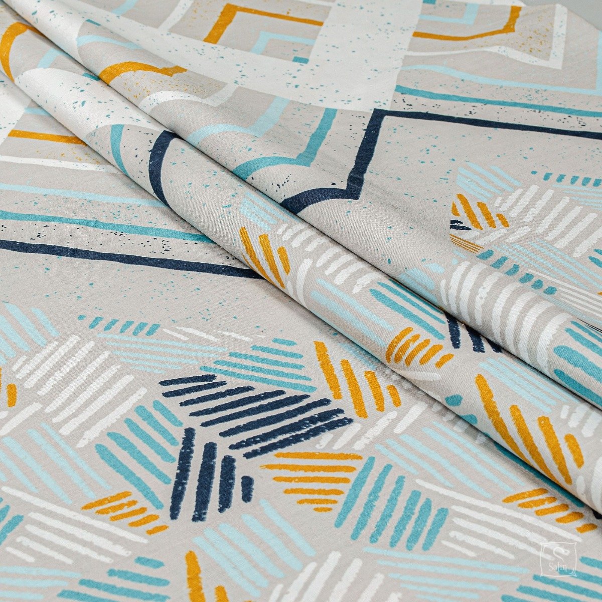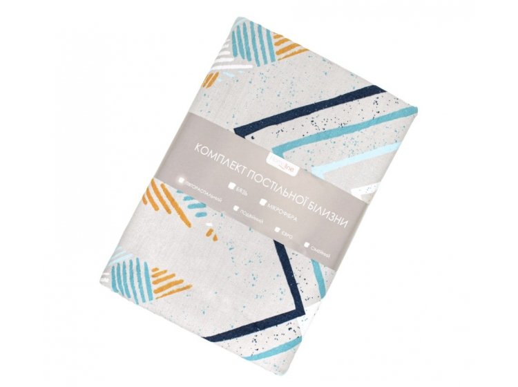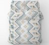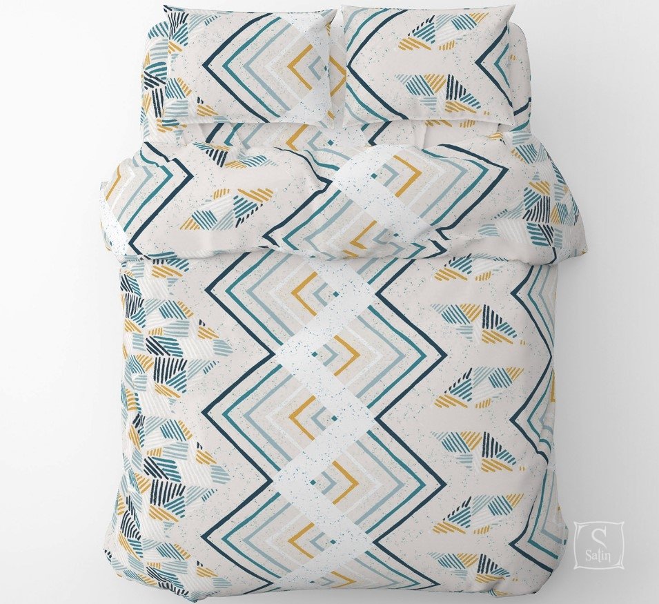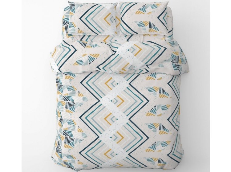Комплект постільної білизни Home Line із бязі Захопленість бежевий-бірюзовий прикрашений геометричним візерунком.