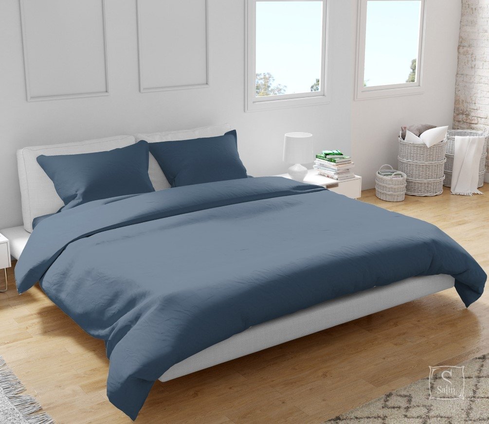 Комплект Home Line Сатин виконаний в однотонному синьому кольорі.