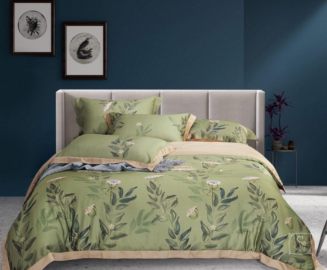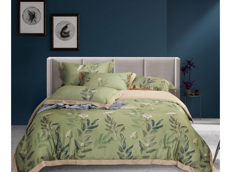 Комплект Брокілон виконаний в оливково-бежевих тонах із квітковим візерунком.