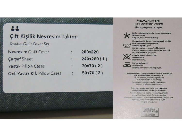 Постільна білизна упакована в елегантну картонну коробку, що робить її чудовим вибором для подарунка. Усередині упаковки знаходиться стильний подарунковий пакет. Виготовлено у Туреччині.