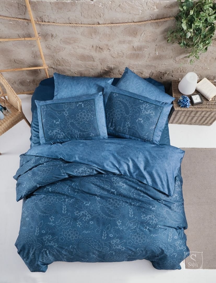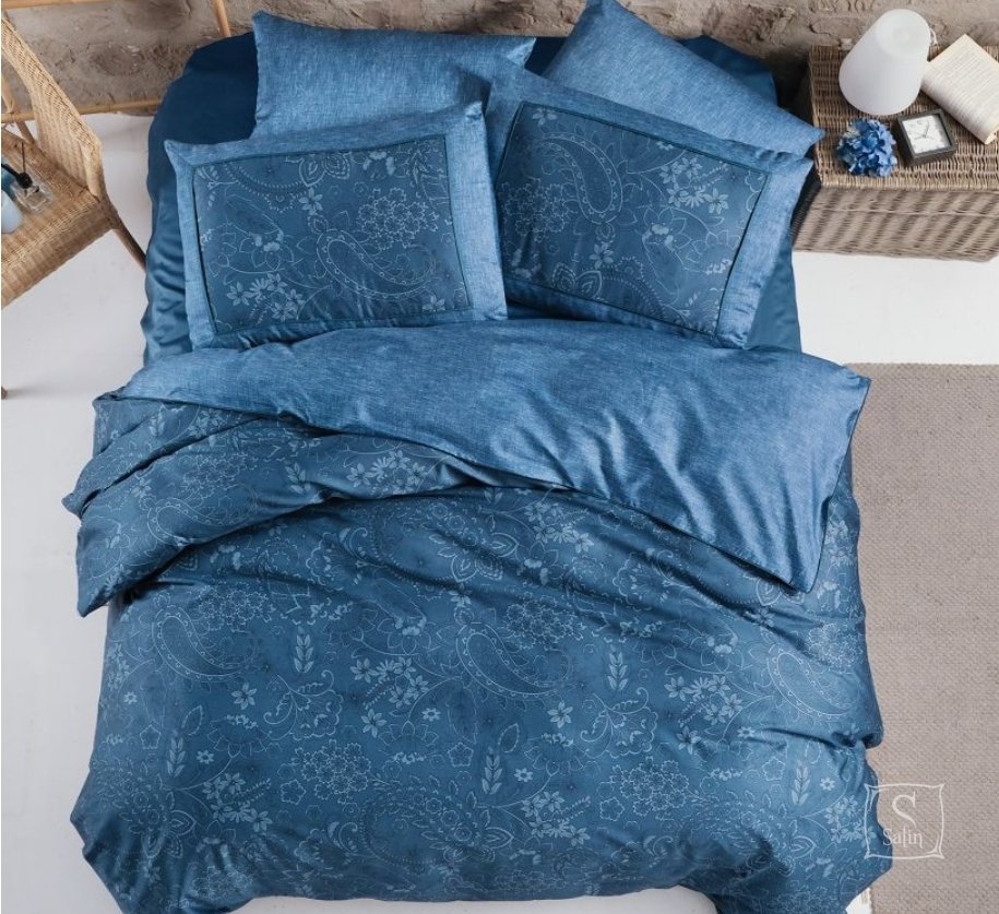 Постільна білизна La Romano Premium Stefan Tapestry – це вишукане поєднання стилю, якості та комфорту, створене для тих, хто цінує розкіш у деталях. Ця постільна білизна в глибокому синьому кольорі з малюнком квітів, що надає йому витонченого та вишуканого вигляду.