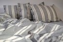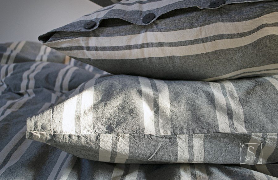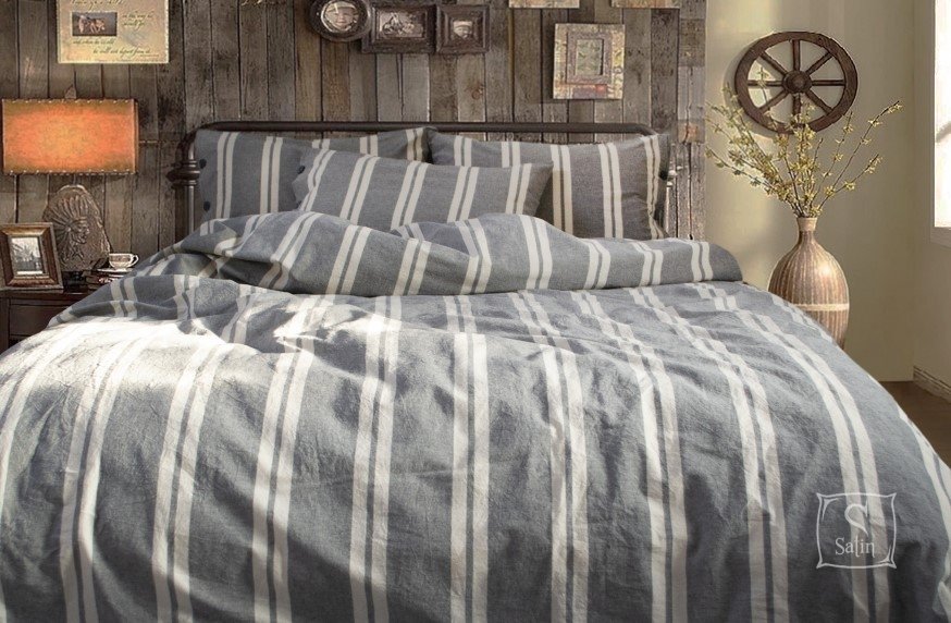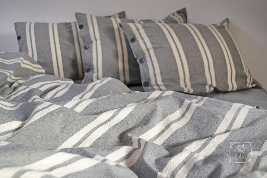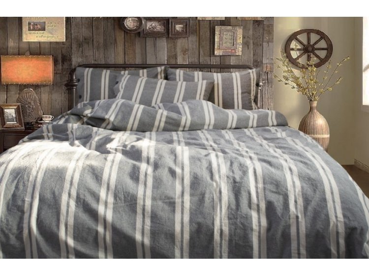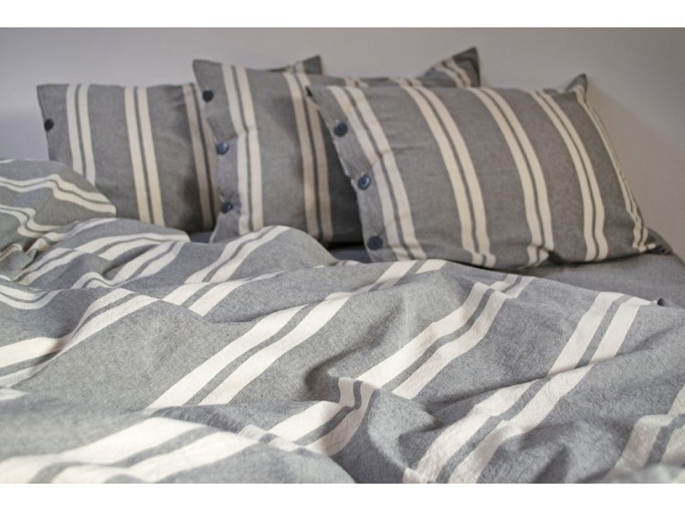 Комплект Washed cotton Kanden виконаний у сірому кольорі з смужкою. Наволочки на гудзиках.