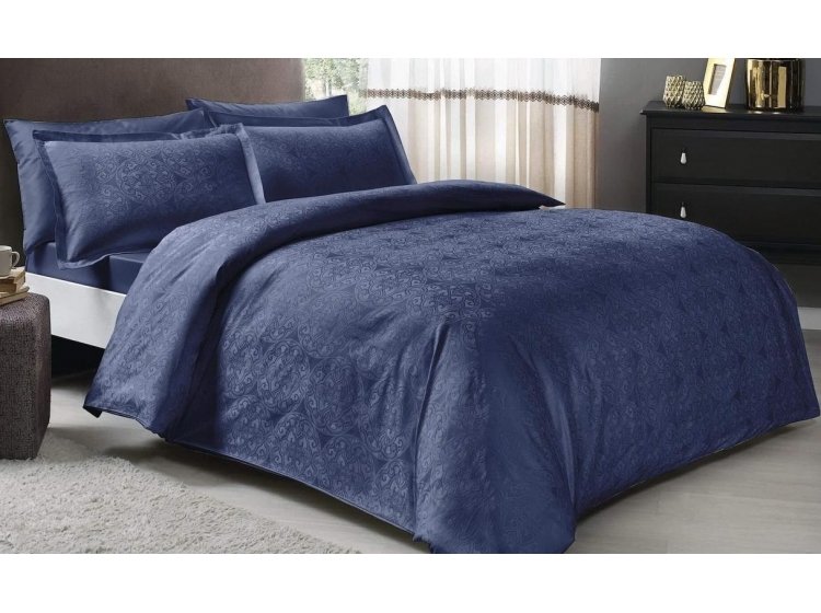 • Комплект Nodus Blue виконаний у темно-синьому кольорі. Серія Nodus це однотонна постільна білизна з ефектним візерунком;
