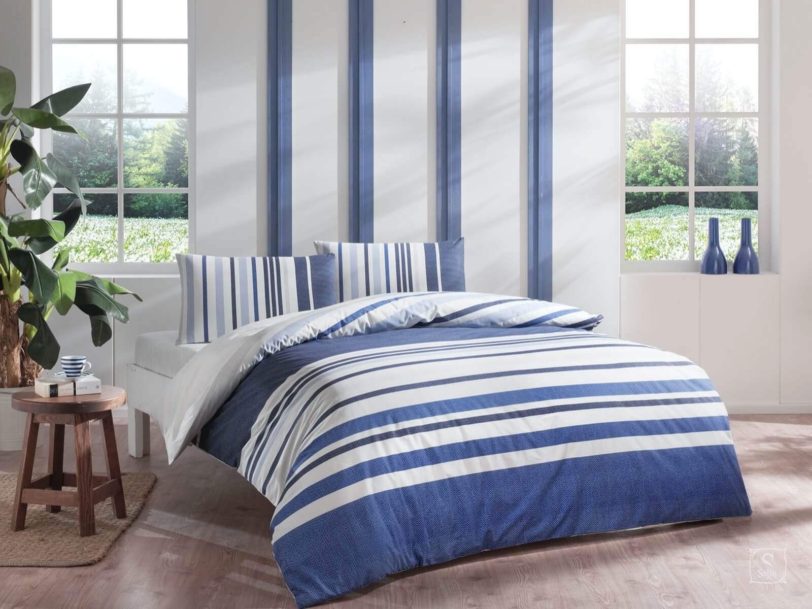 • Набір Echo Blue синьо-білий з візерунком смужка. Використані тканини-компаньйони;