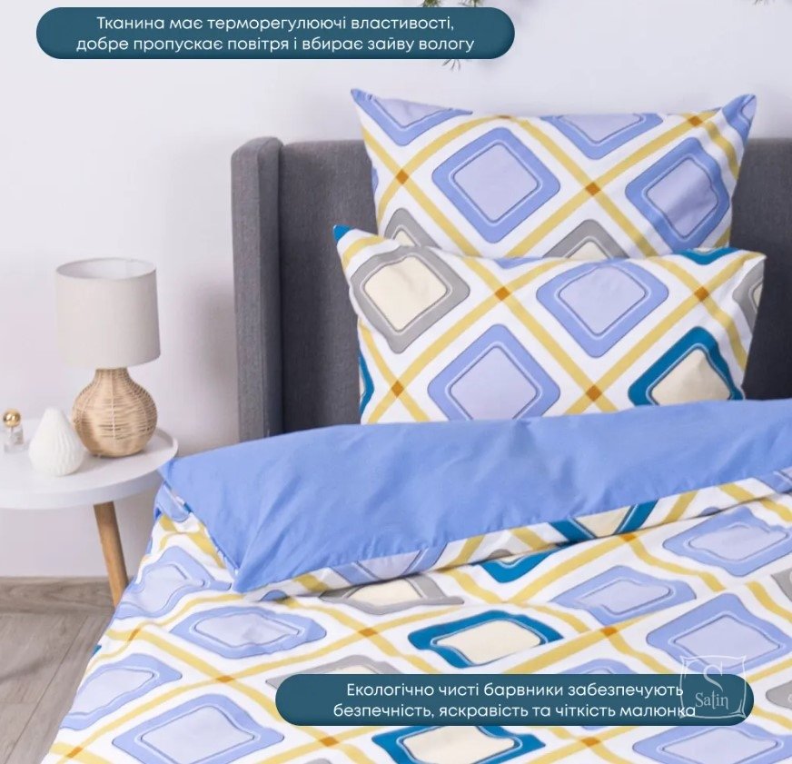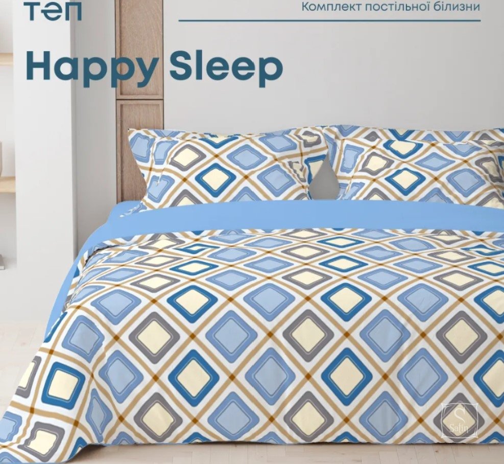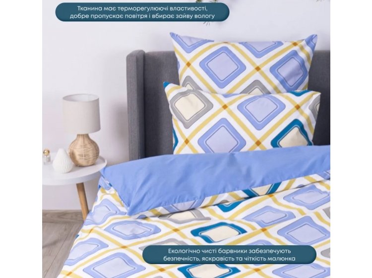 Євро: підковдра: 200х215 см - 1 шт, простирадло: 215х240 см - 1 шт., наволочка: 50х70 см - 2 шт.