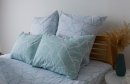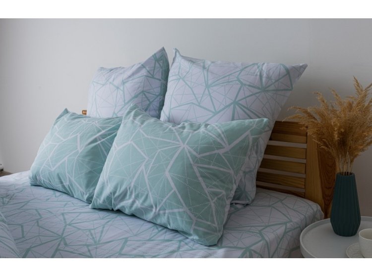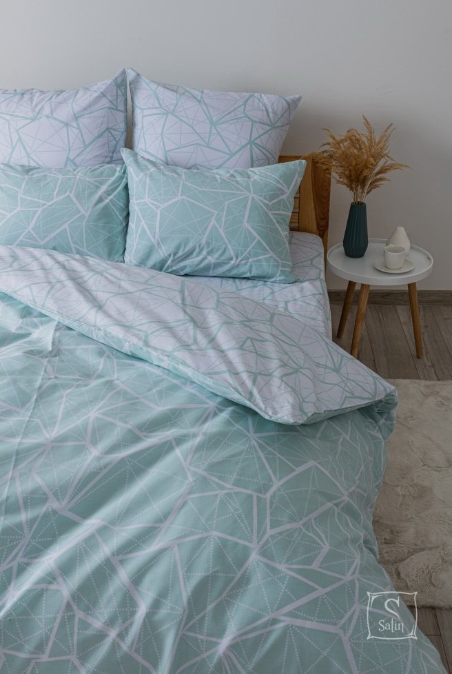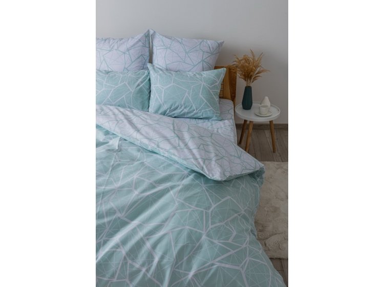 Комплект Happy Sleep Marble виконаний у біло-ментолових тонах із оригінальним візерунком геометрія.