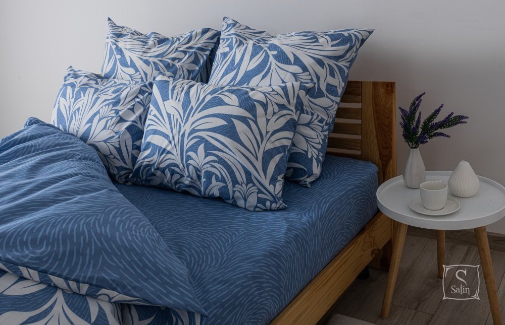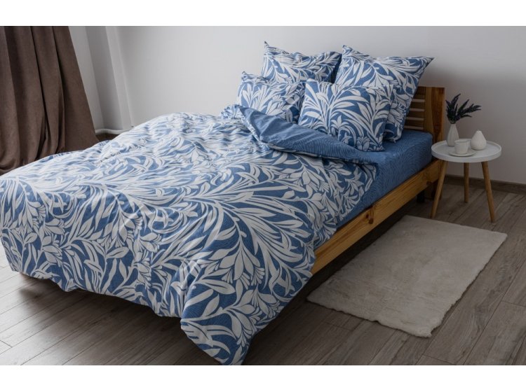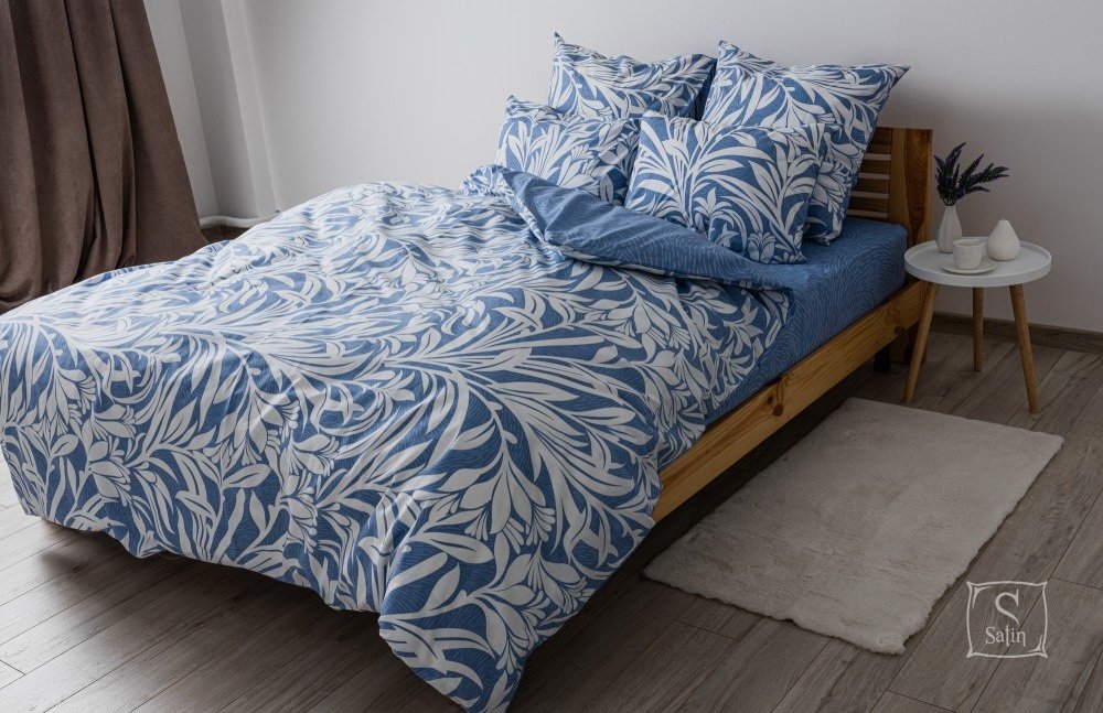 Комплект ТЕП Soft dreams Light Blue Fantasy з гарним малюнком листя на блакитному тлі, виготовлений із високоякісного ранфорсу.