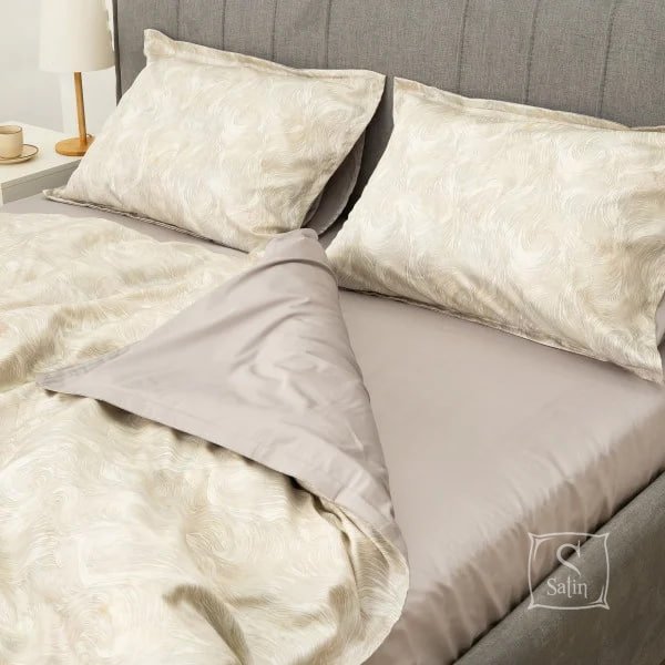 • Тканина Сатин Єгипетська бавовна ще називають - "бавовняний шовк" - це узагальнюючий термін для бавовни з довгими та екстрадлинними волокнами. Якщо порівнювати її зі звичайним сатином, то постільна білизна з єгипетської бавовни легша, ніж звичайний сатин. Завдяки тому, що Єгипетська бавовна практично не містить лінту (бавовняного пуху), на постільній білизні не утворюються катишки навіть після численних прань. При плетінні полотна співвідношення ниток основи і качка підібрано так, що лицьова поверхня матеріалу виходить ідеально гладкою, а виворот виглядає трохи шорсткою і через це не ковзає по матрацу.