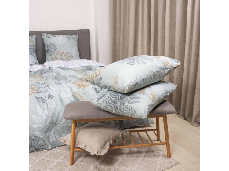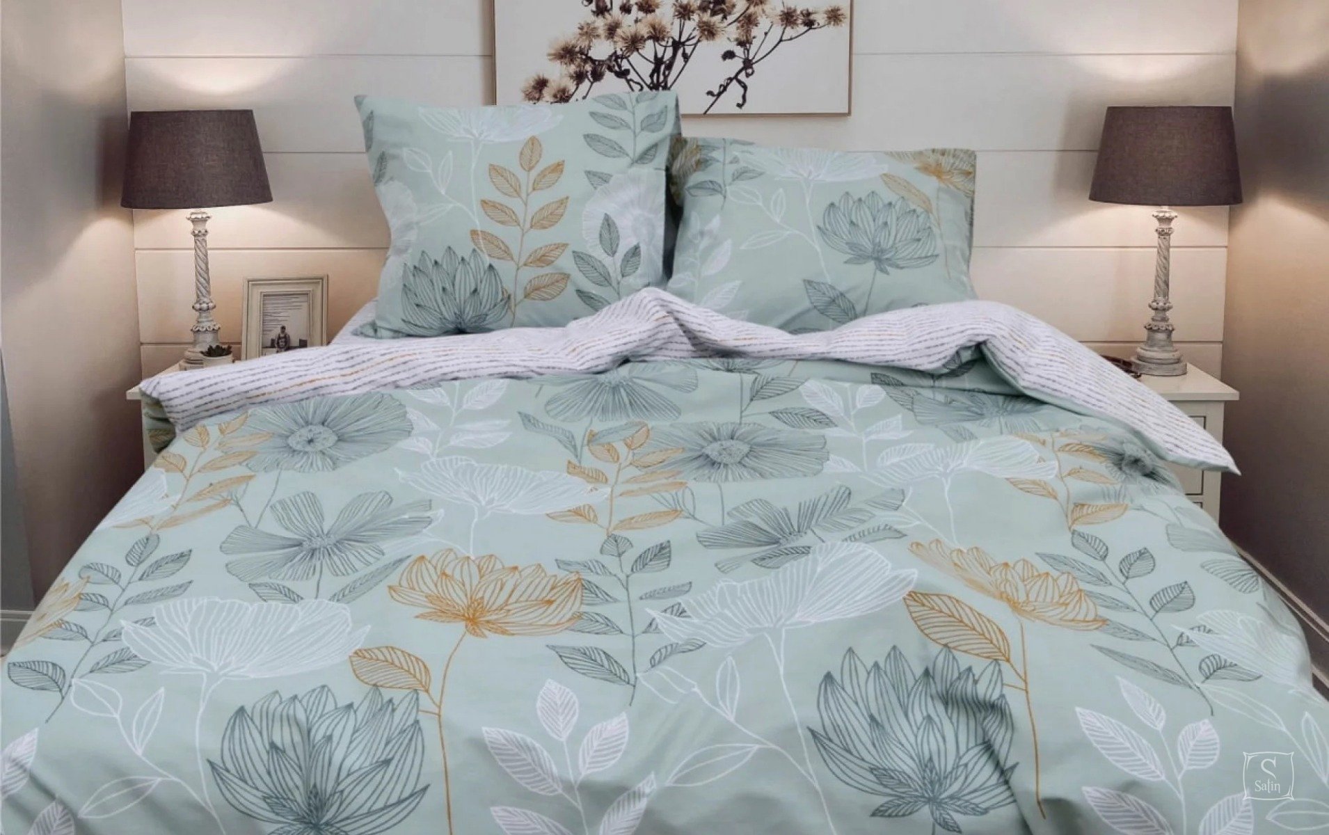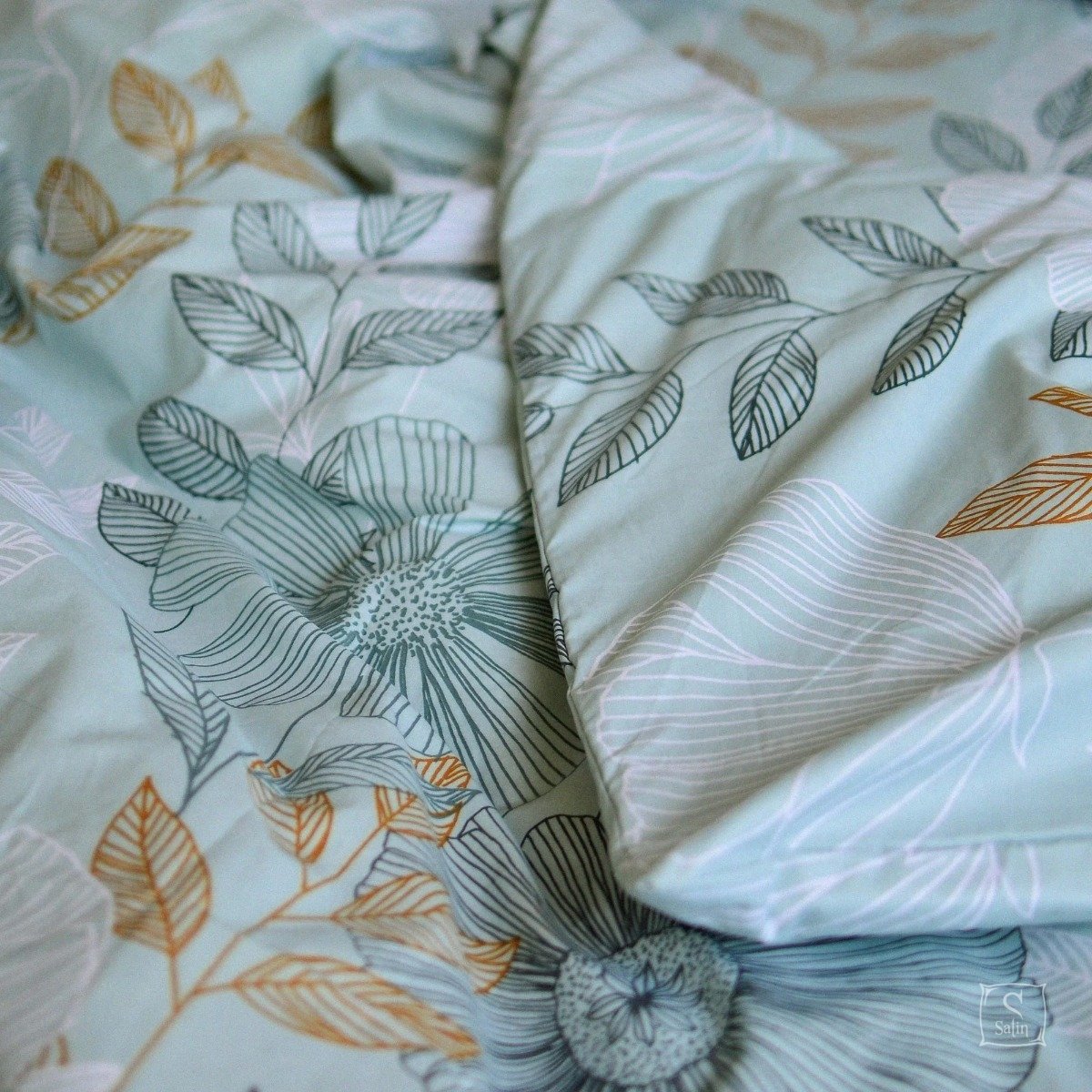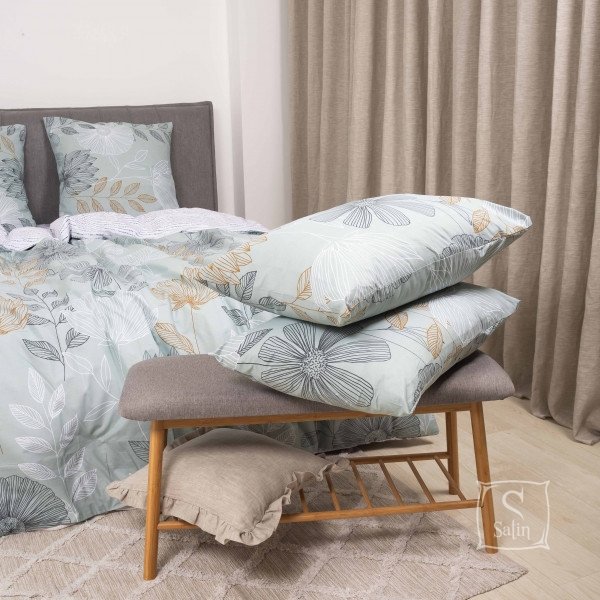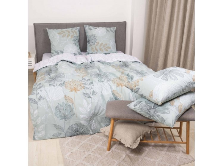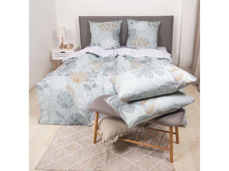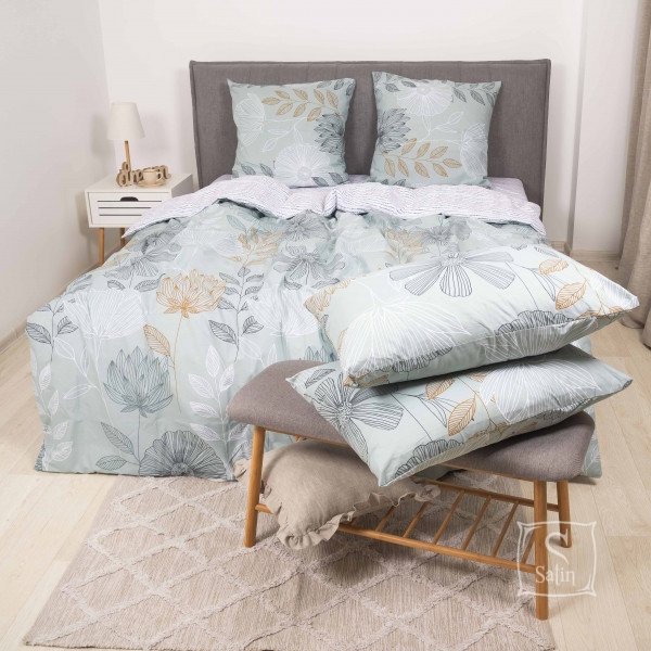 Постільна білизна Viluta із ранфорсу. Модель 100 у сірому кольорі з квітковим принтом.
