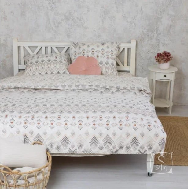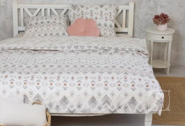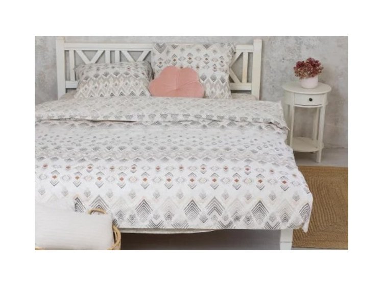 Постільна білизна Viluta з ранфорсу. Модель&22202 білого кольору з бежевим геометричним малюнком.