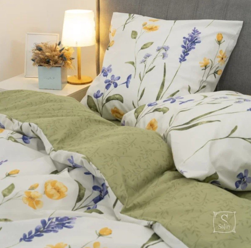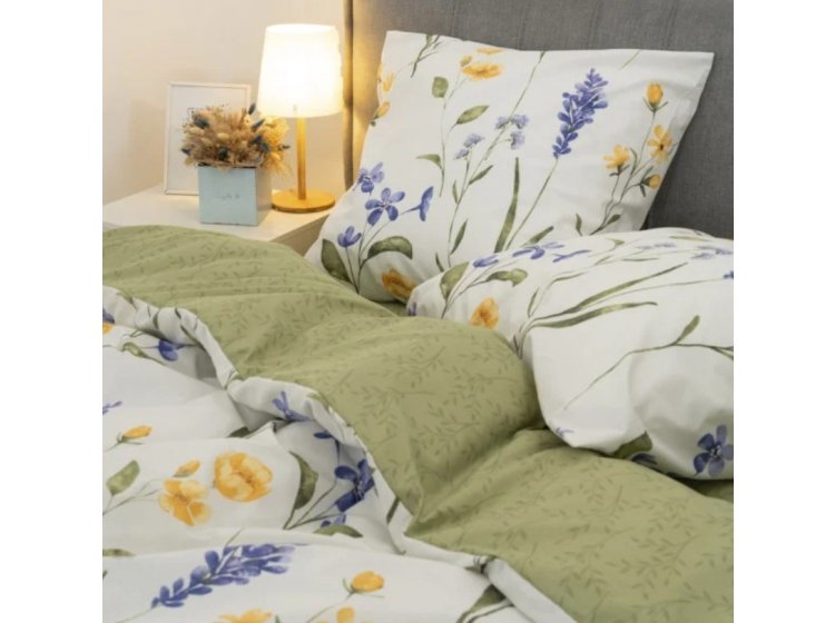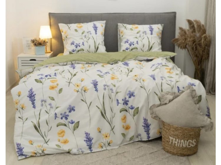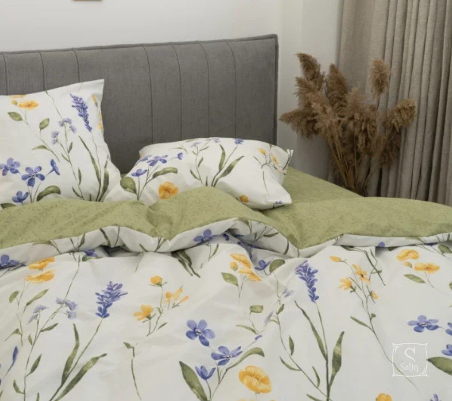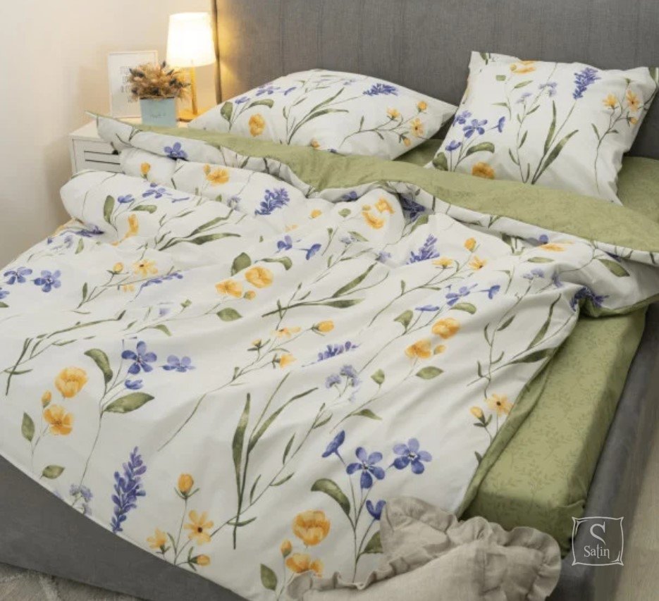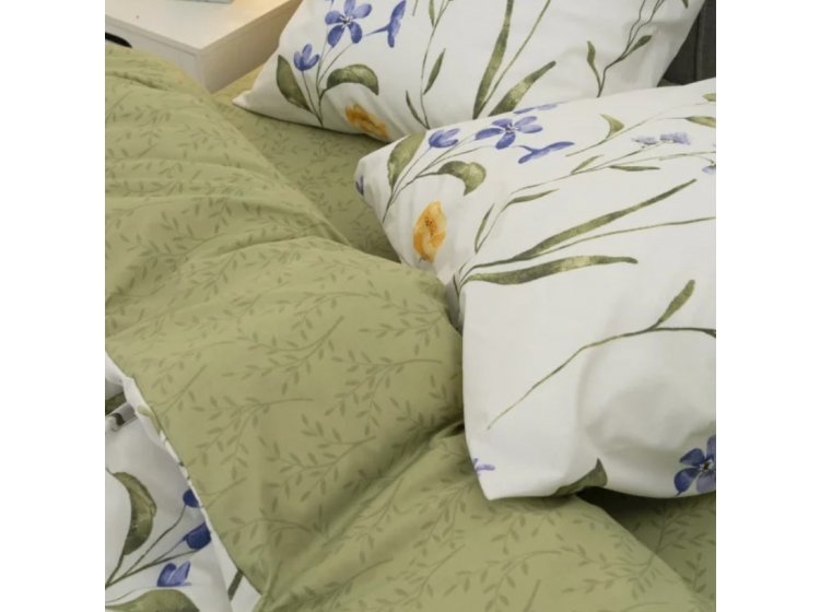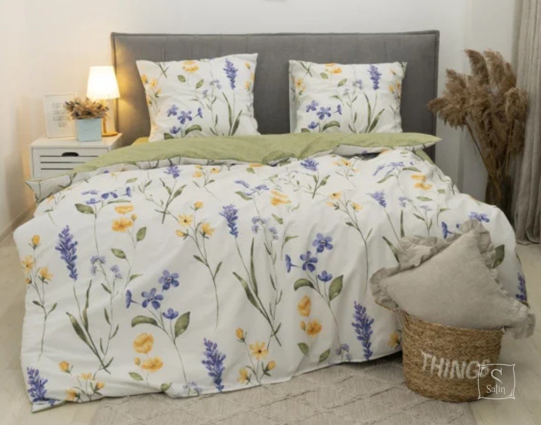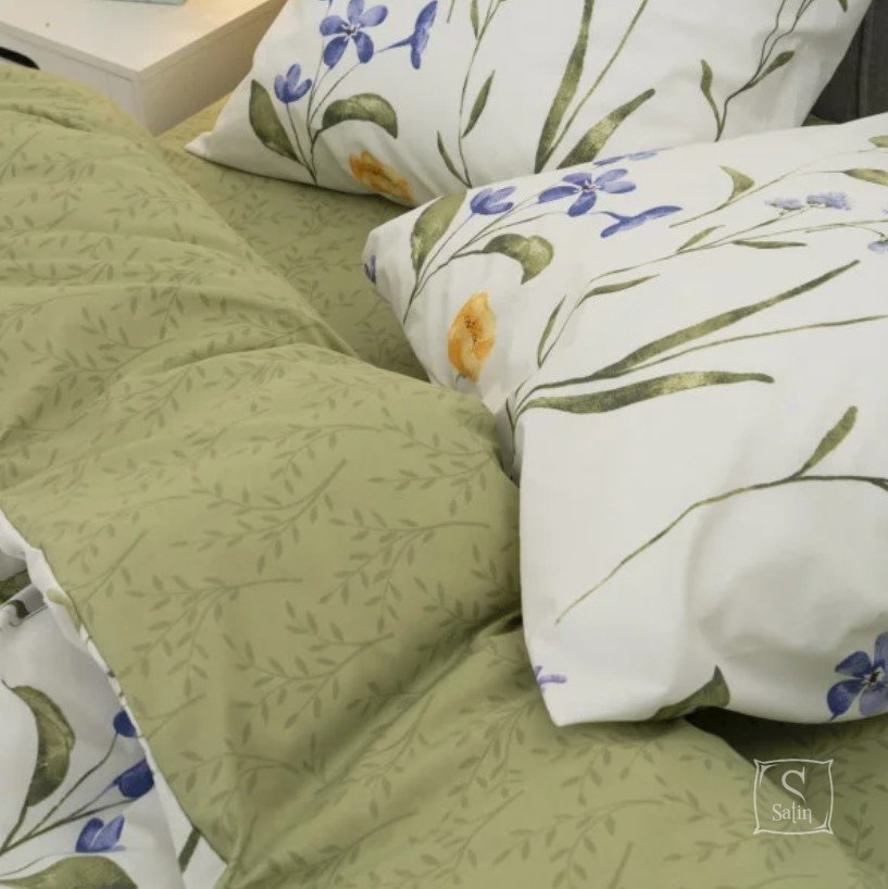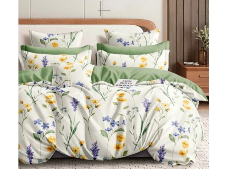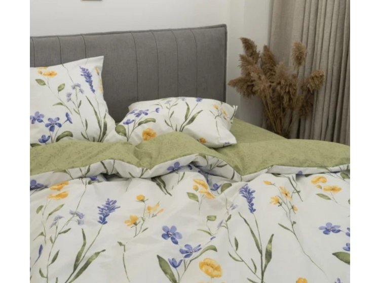 Постільна білизна Viluta із ранфорсу. Модель 24266 у зелено-різнокольорових тонах із квітковим принтом.