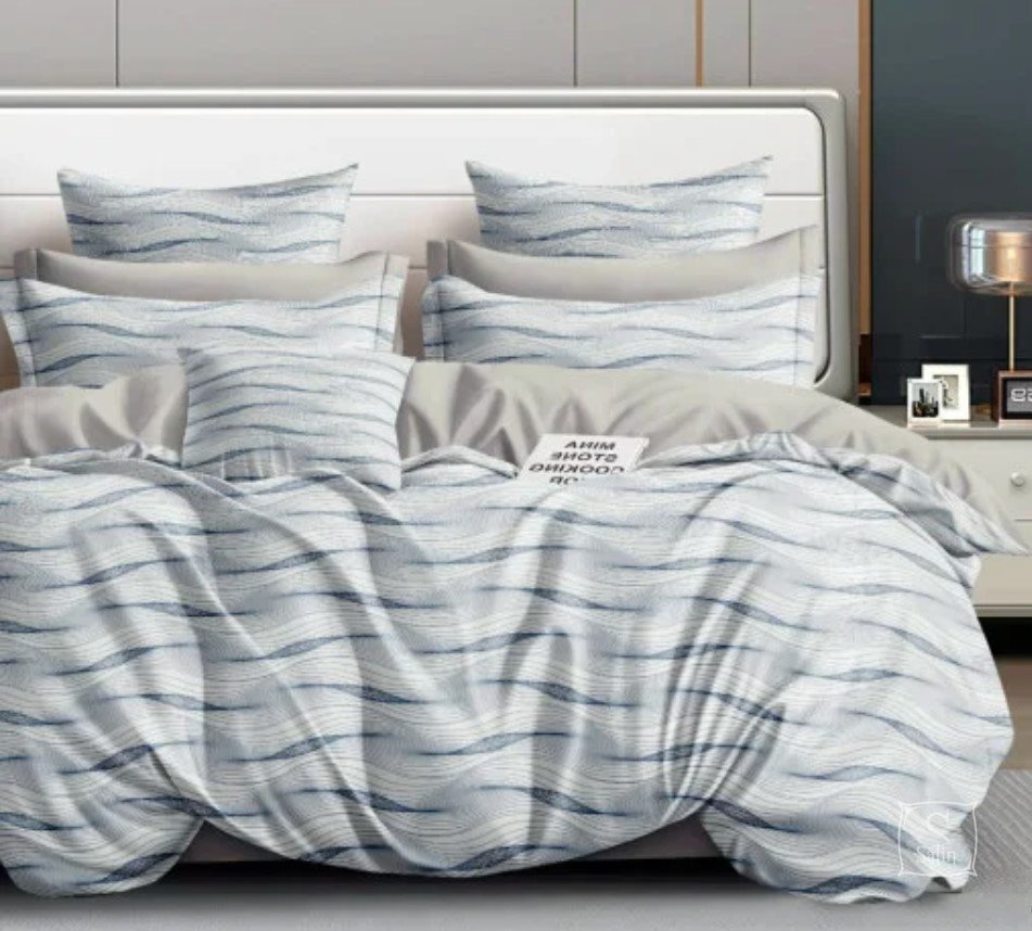 Постільна білизна Viluta із ранфорсу. Модель 24268 у бежево-блакитних тонах з абстракції принт.