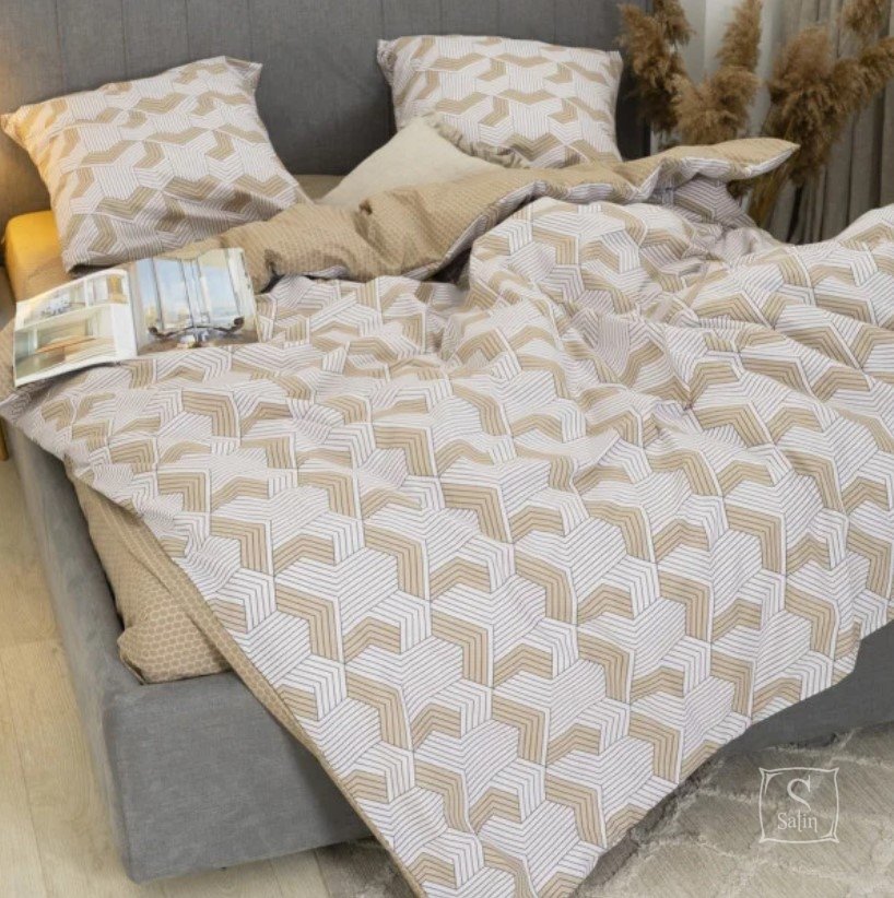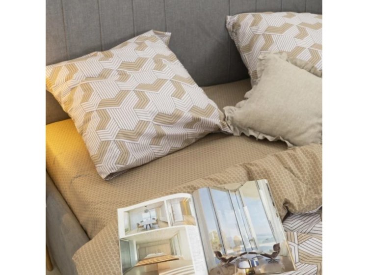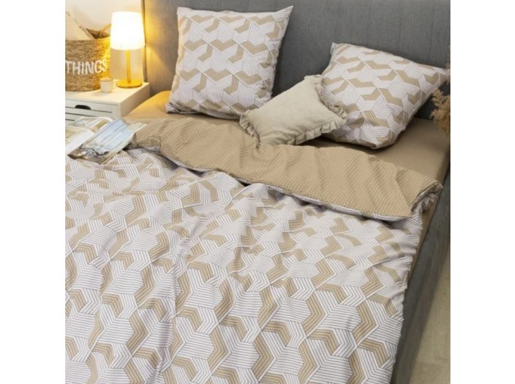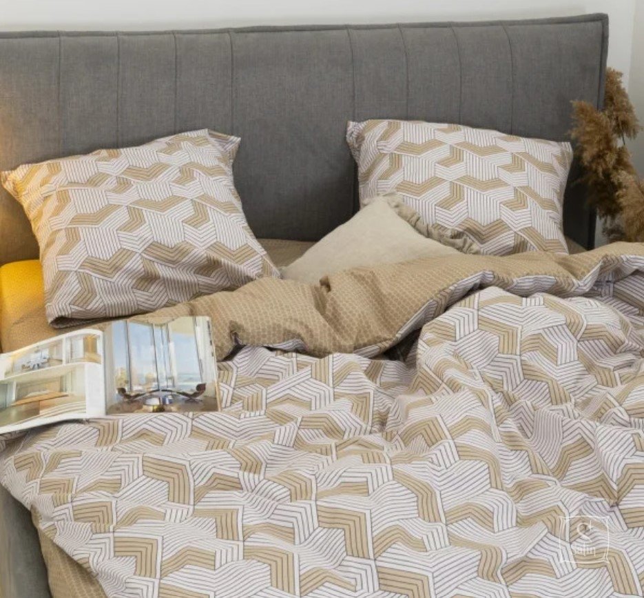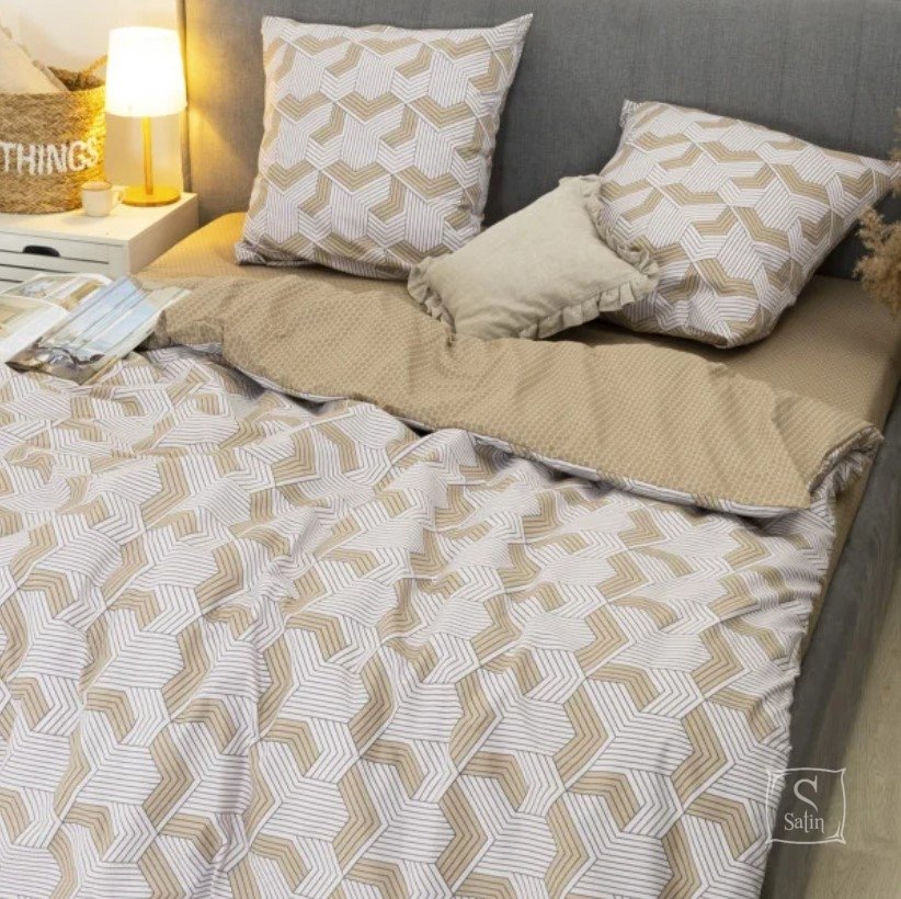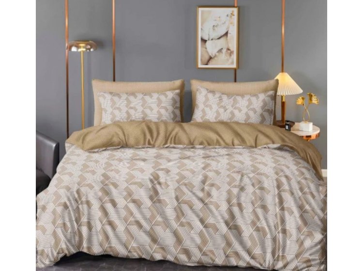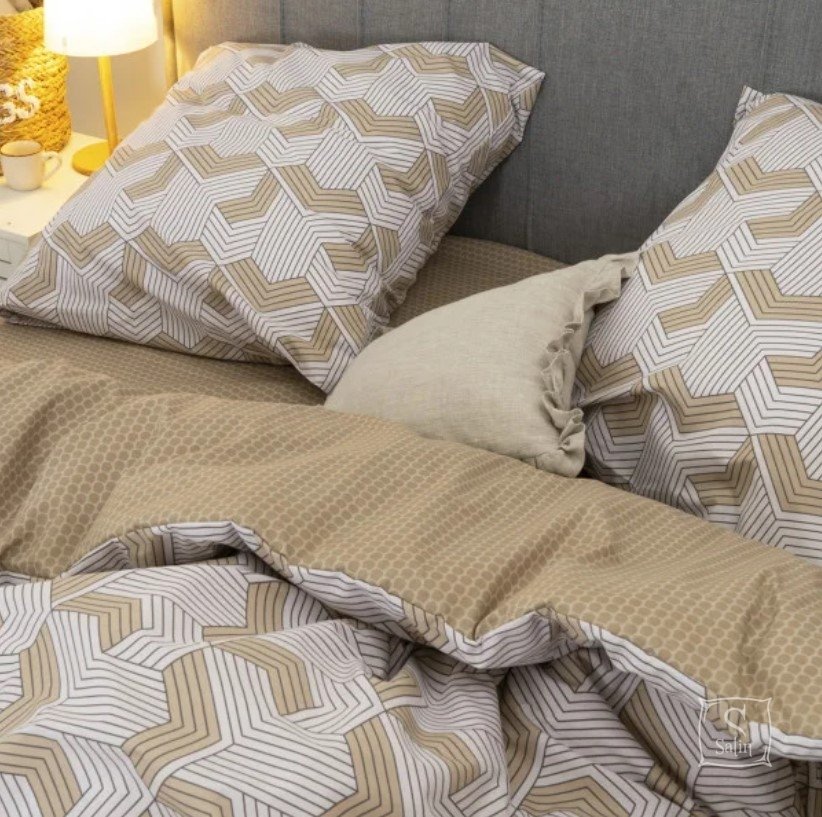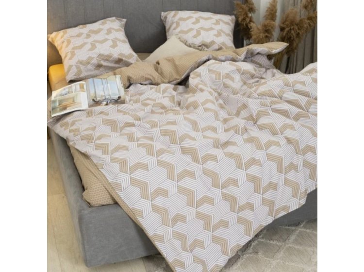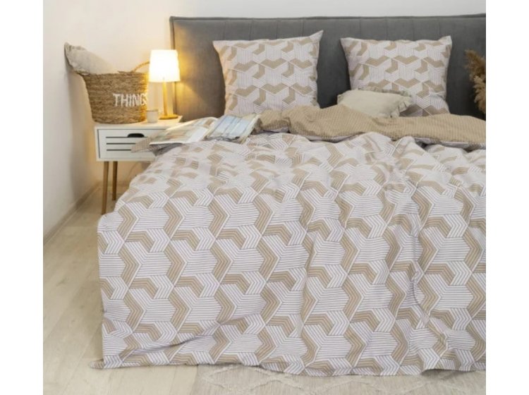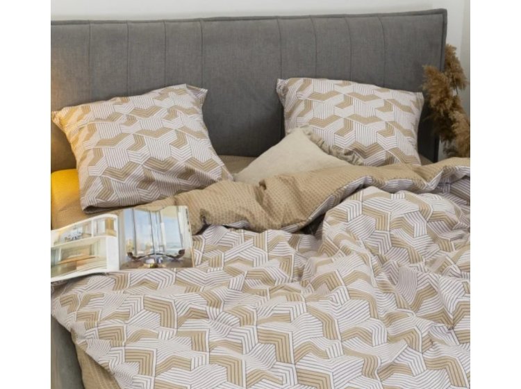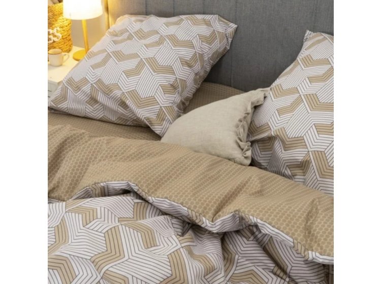 Постільна білизна Viluta із ранфорсу. Модель 24270 у бежево-коричневих тонах з абстракцією принтом.