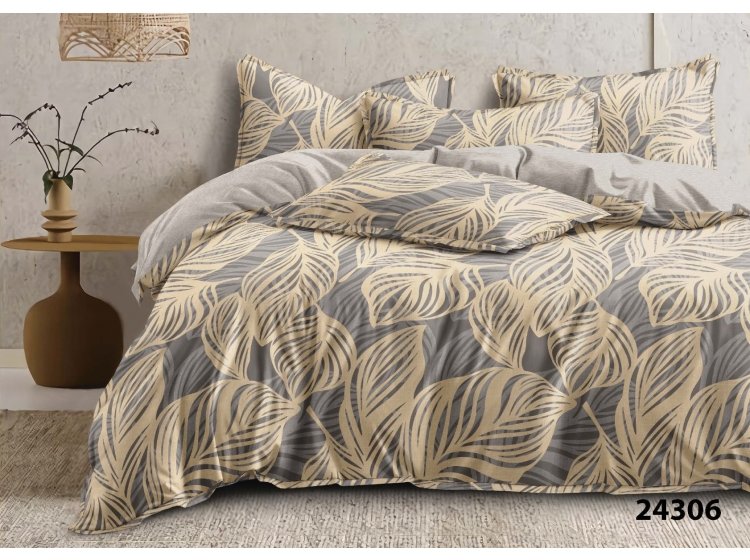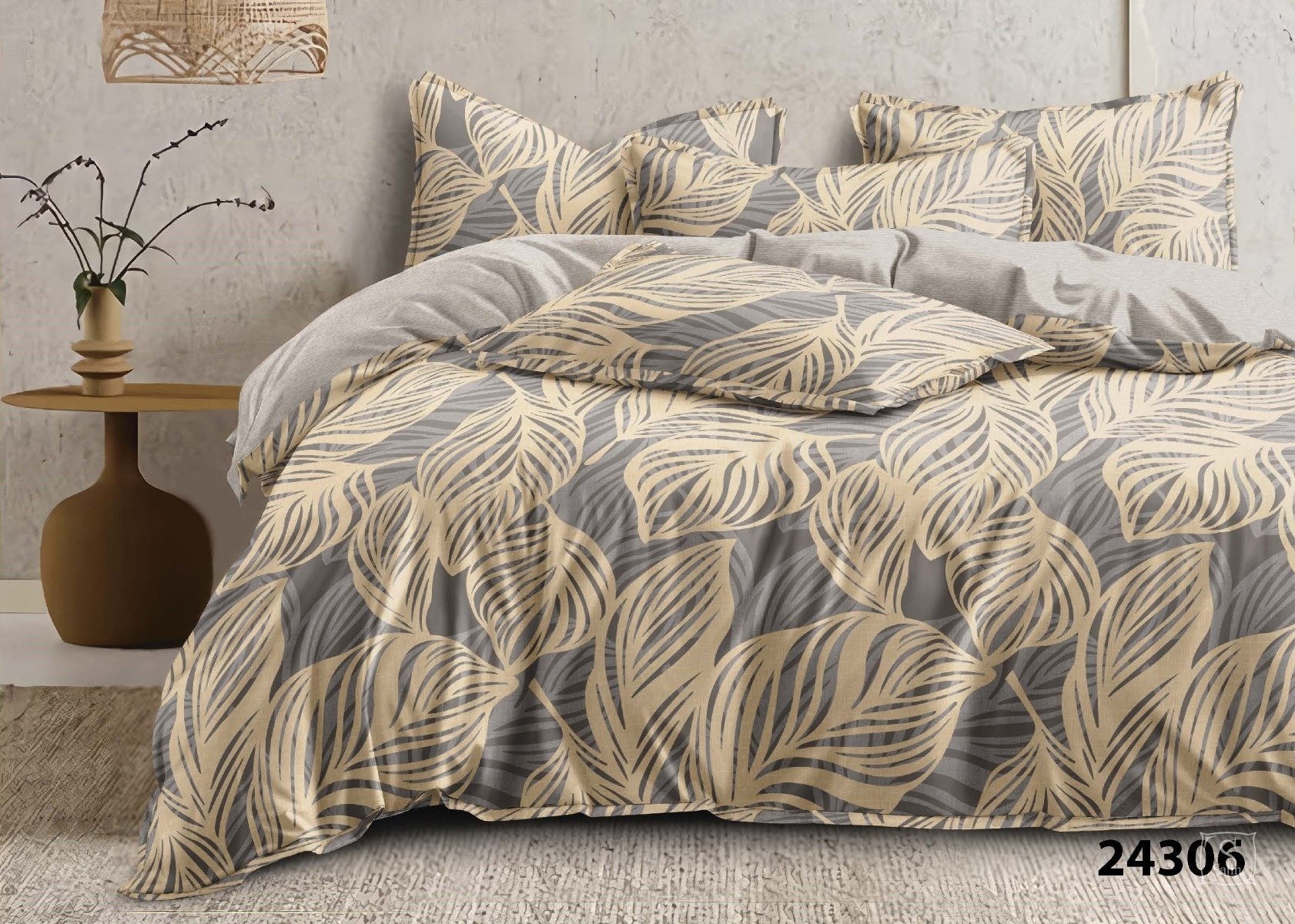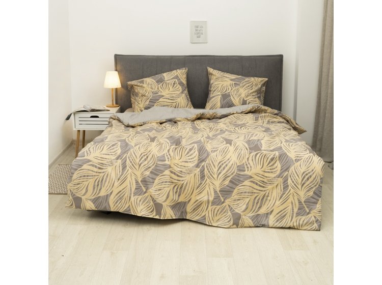 Постільна білизна Viluta із ранфорсу. Модель 24306 виконана в кольорових тонах з оригінальним принтом листя.