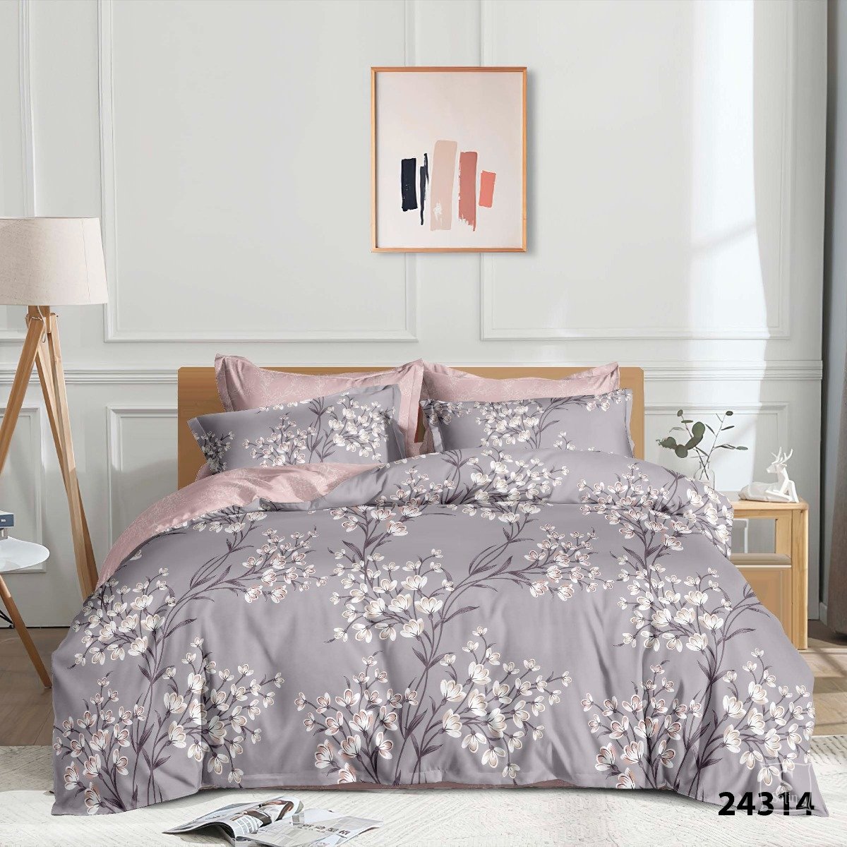 Постільна білизна Viluta із ранфорсу. Модель 24314 виконана в сіро-бежевих тонах із квітковим принтом.